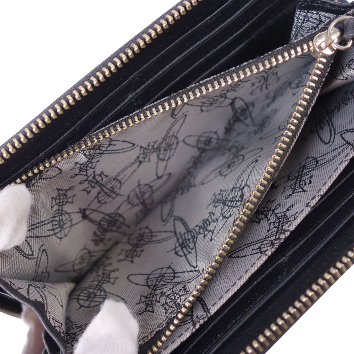 【美品】ヴィヴィアンウエストウッド Vivienne Westwood 財布 長財布 ロングウォレット ラウンドファスナー オーブ レザー レディース ブラック【中古】