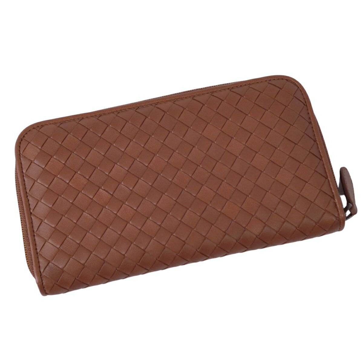 ボッテガヴェネタ BOTTEGA VENETA 財布 長財布 ロングウォレット イントレチャート レザー メンズ レディース イタリア製 ブラウン サイズ-