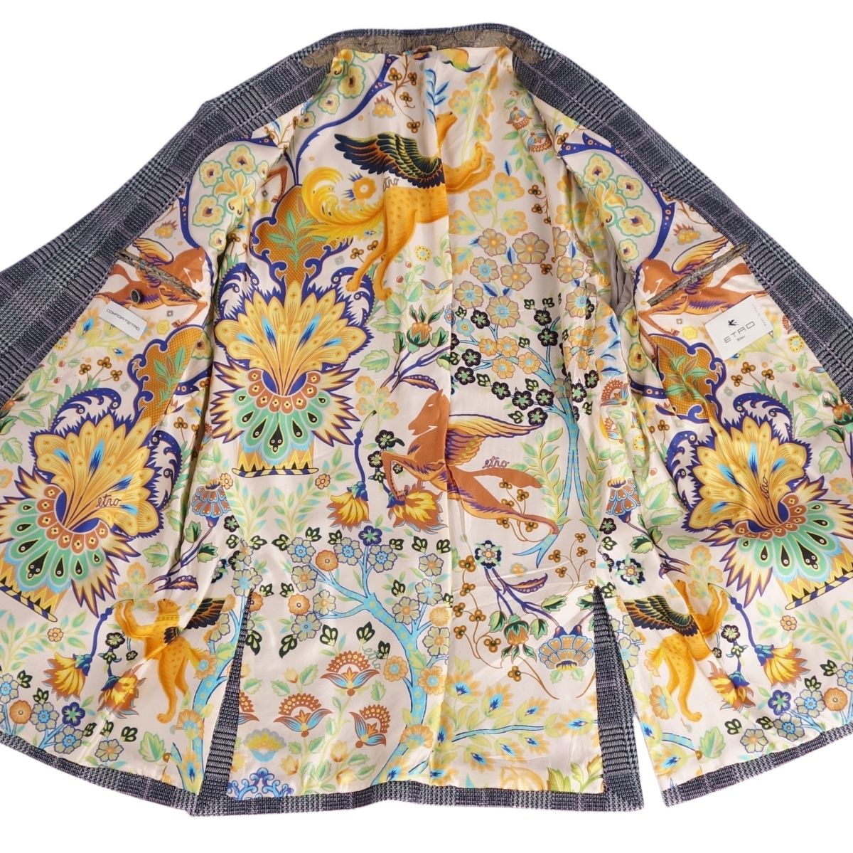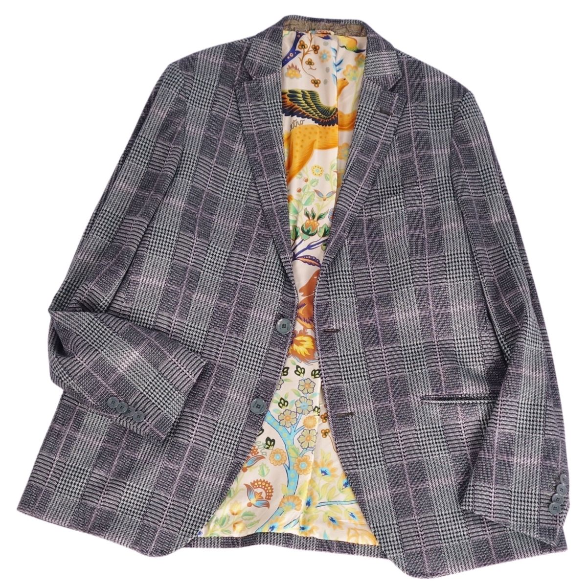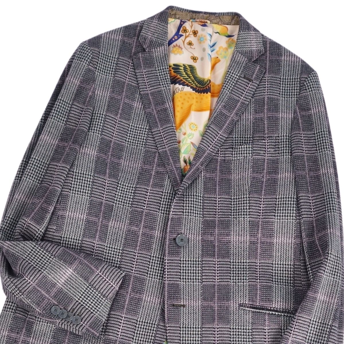 エトロ ETRO ジャケット テーラード チェック レーヨン アウター メンズ イタリア製 グレー/グリーン サイズ60(3XL)