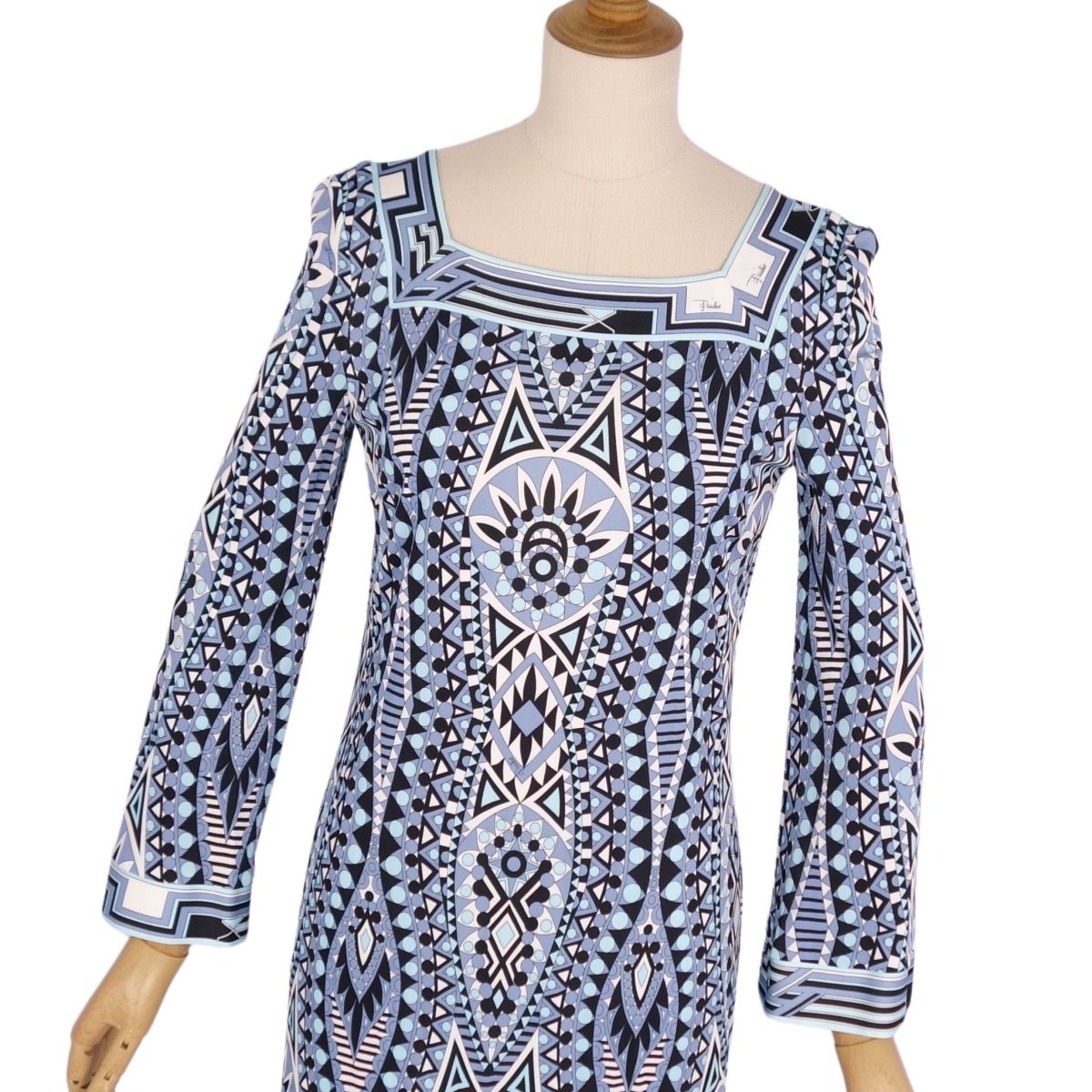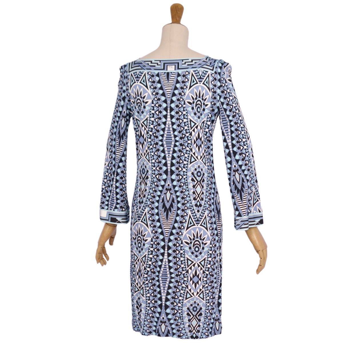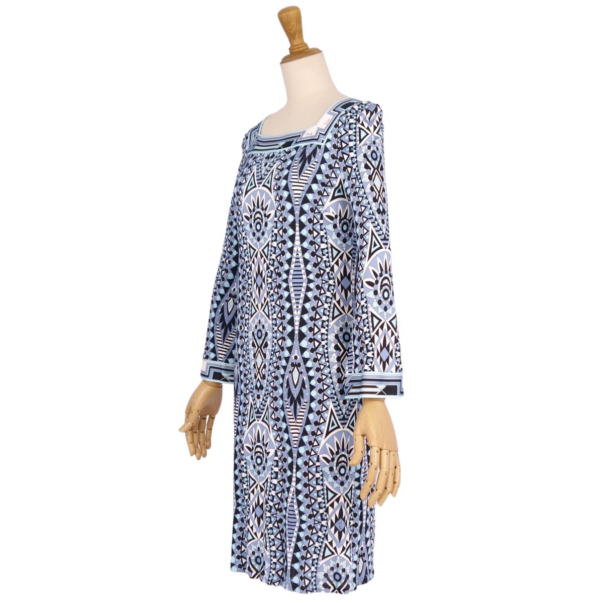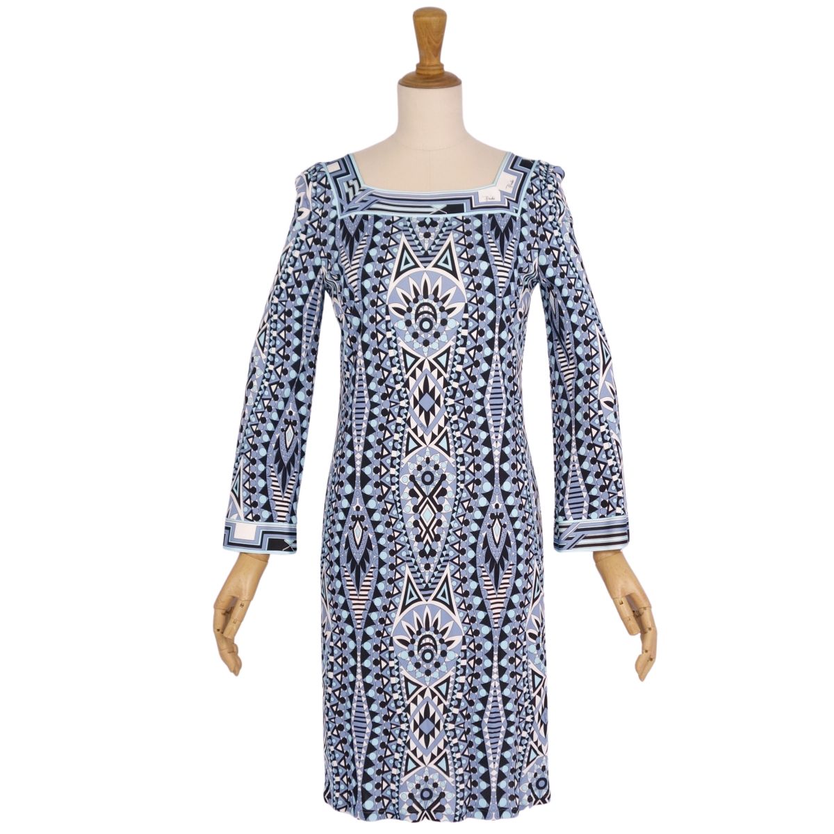 エミリオプッチ EMILIO PUCCI ワンピース ロングスリーブ 長袖 レーヨン ジャージー トップス レディース イタリア製 ブルー サイズI38(M相当)