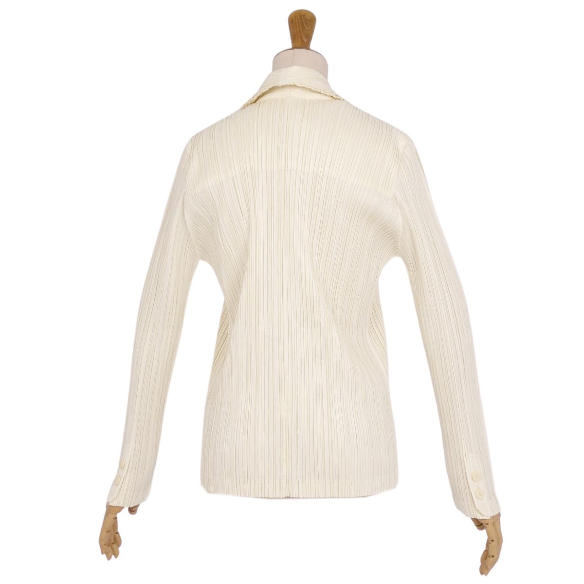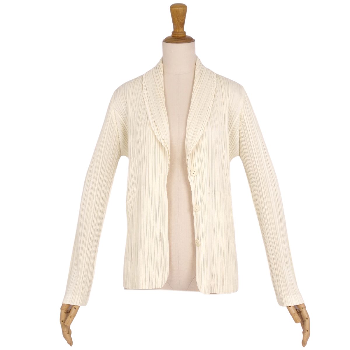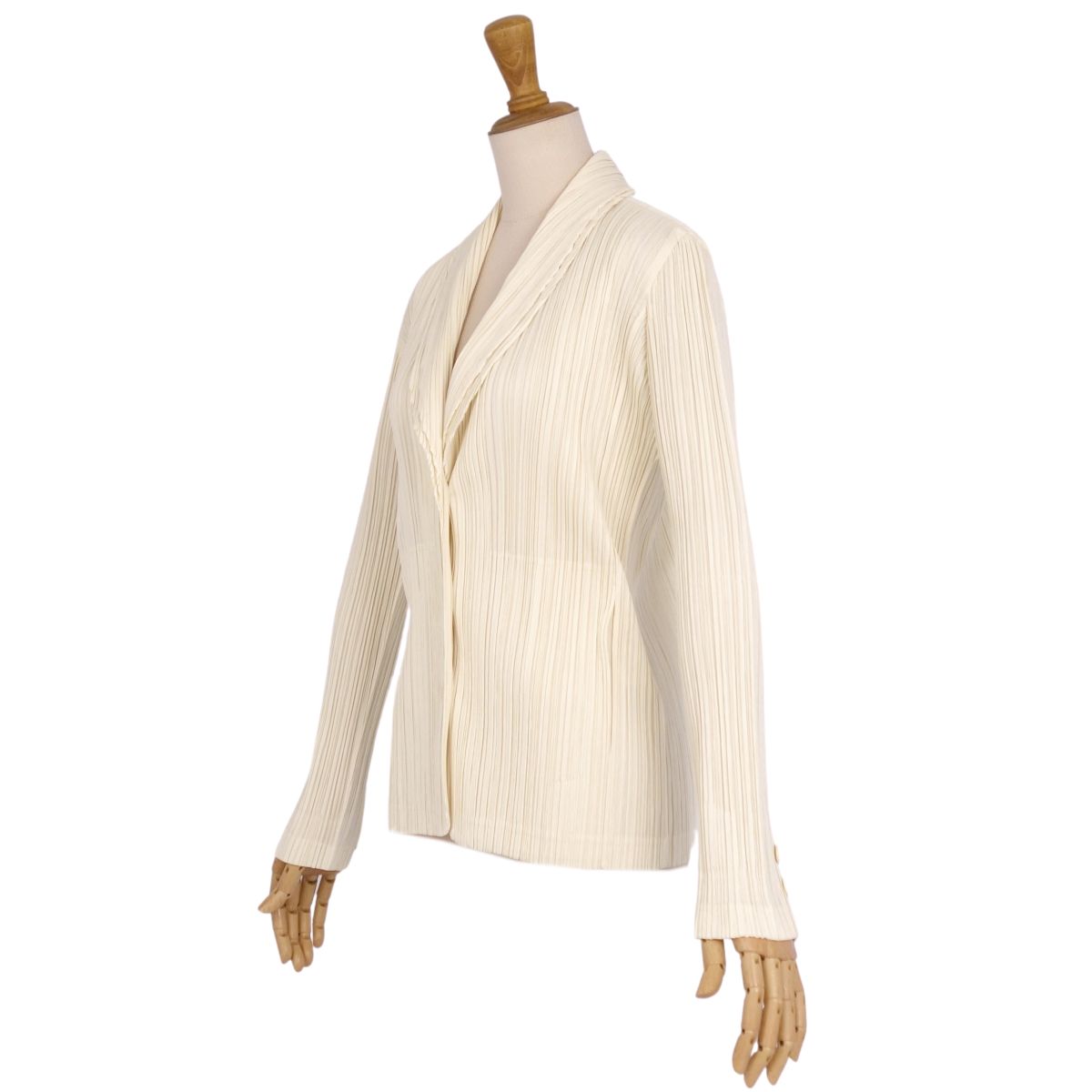 プリーツプリーズ イッセイミヤケ PLEATS PLEASE ジャケット テーラード プリーツ ロゴボタン アウター レディース ホワイト サイズ4(XL相当)
