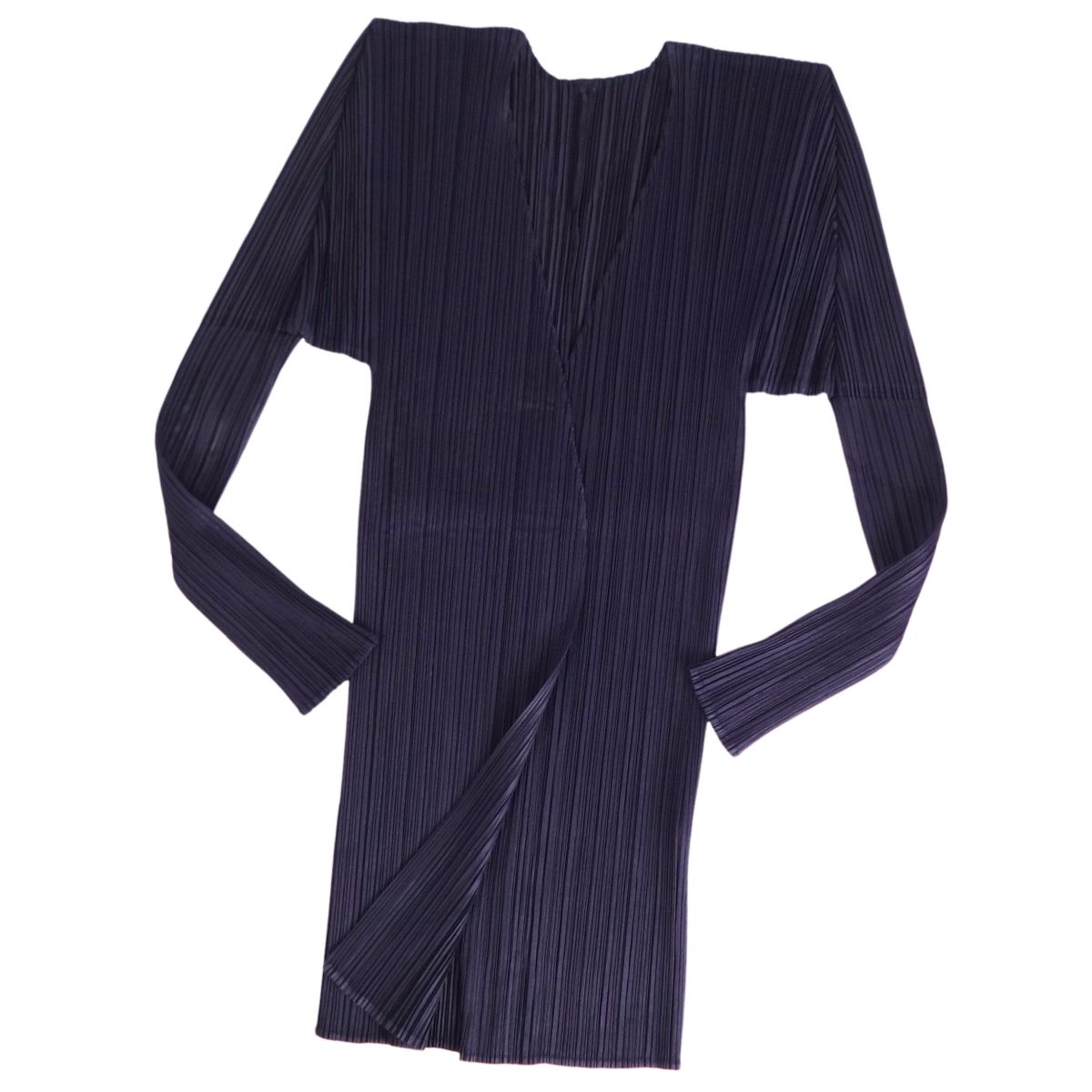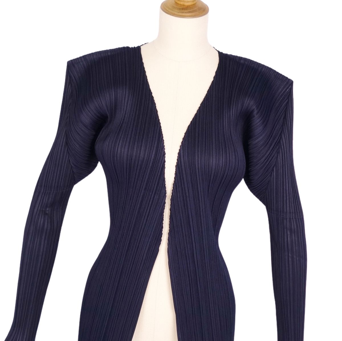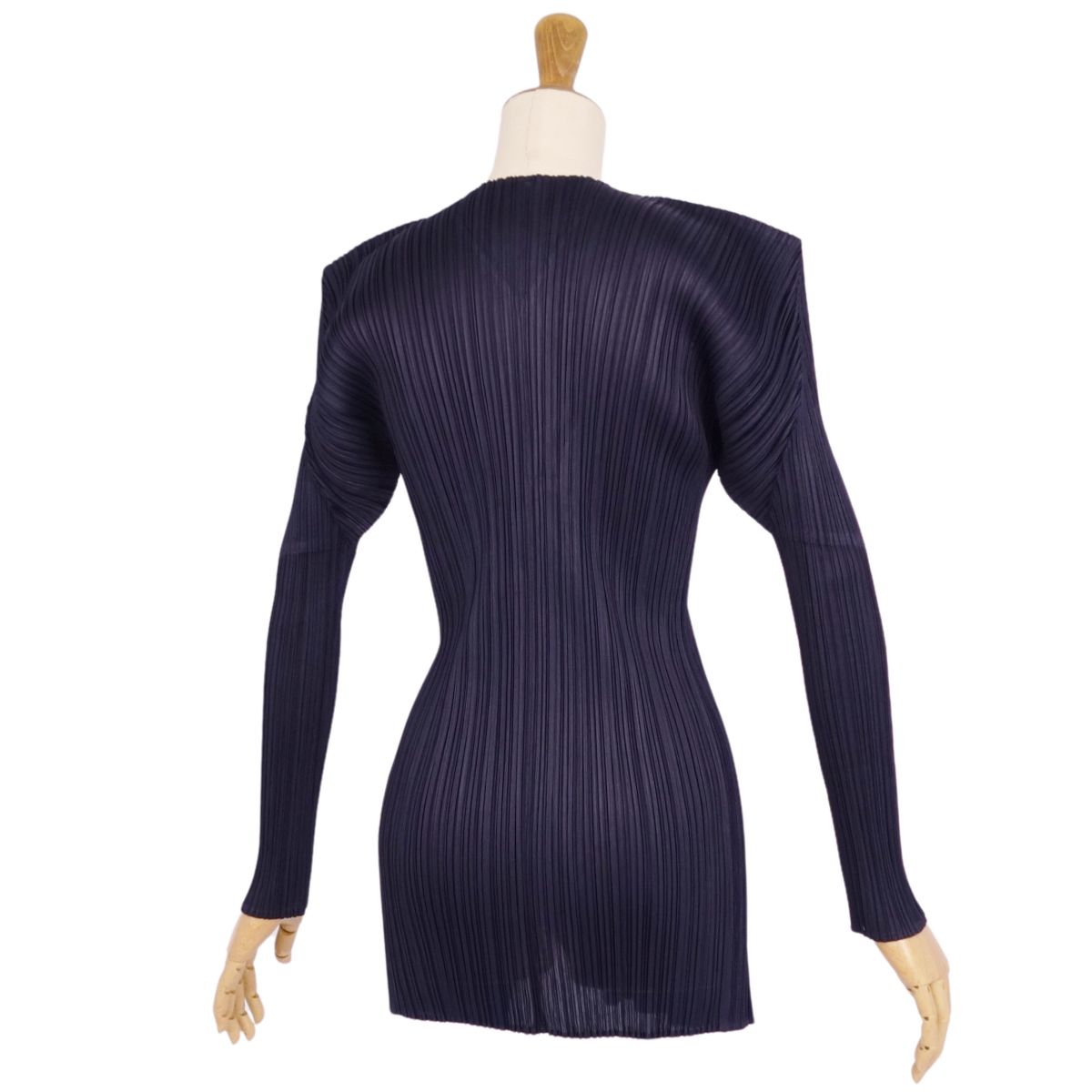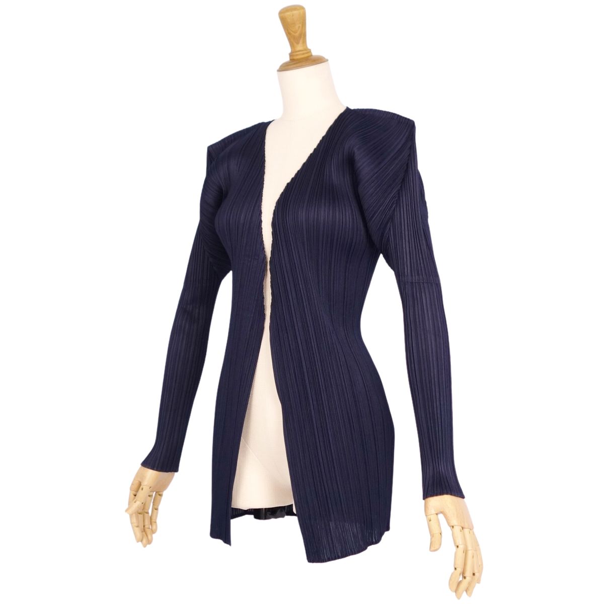 プリーツプリーズ イッセイミヤケ PLEATS PLEASE カーディガン ボタンレス ロングスリーブ 長袖 プリーツ トップス レディース ネイビー サイズ3(L相当)
