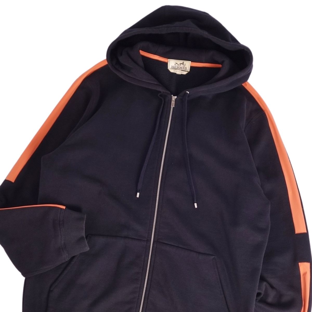 エルメス HERMES パーカー ランH RUN H フーディー スウェット ジップアップ コットン トップス メンズ イタリア製 ネイビー サイズL