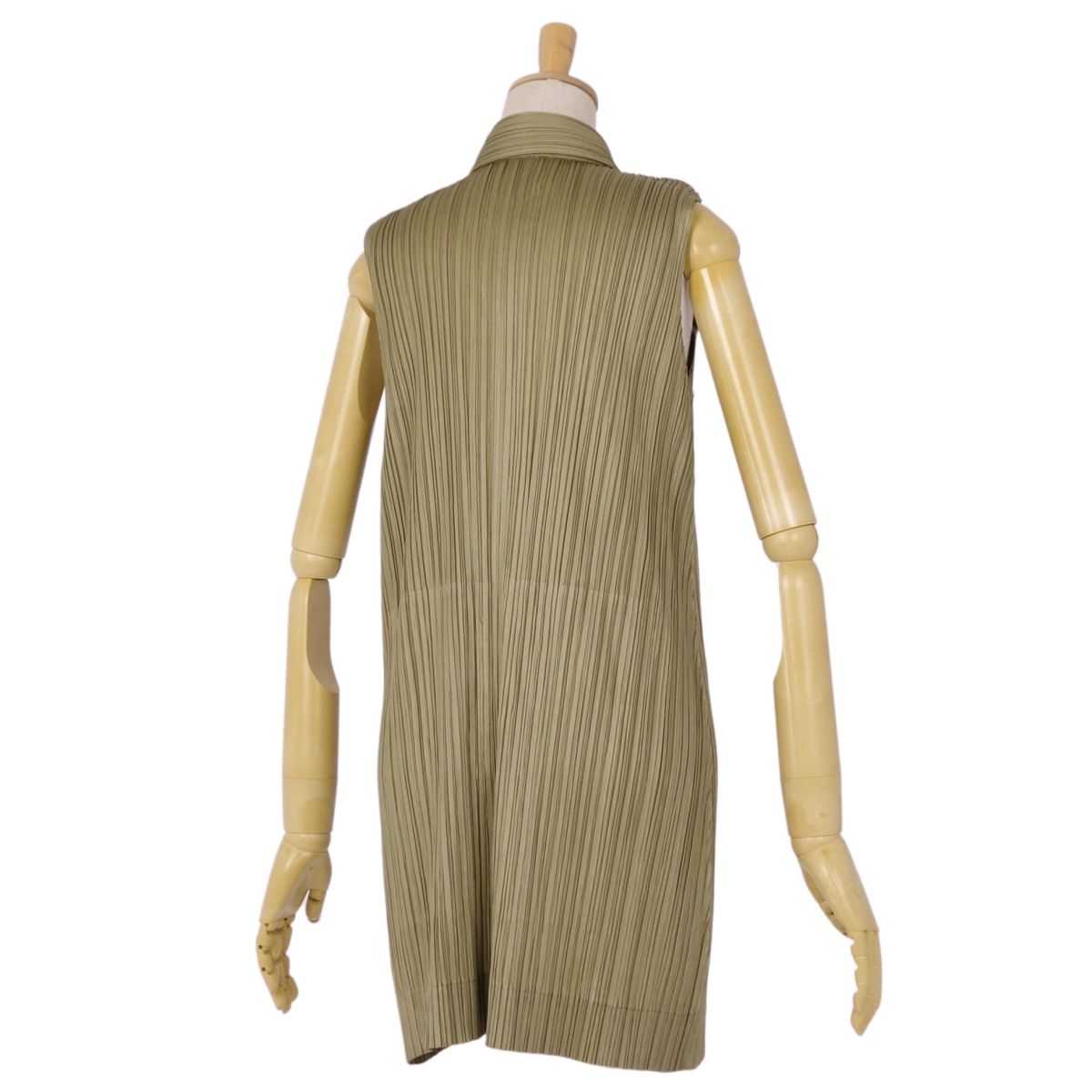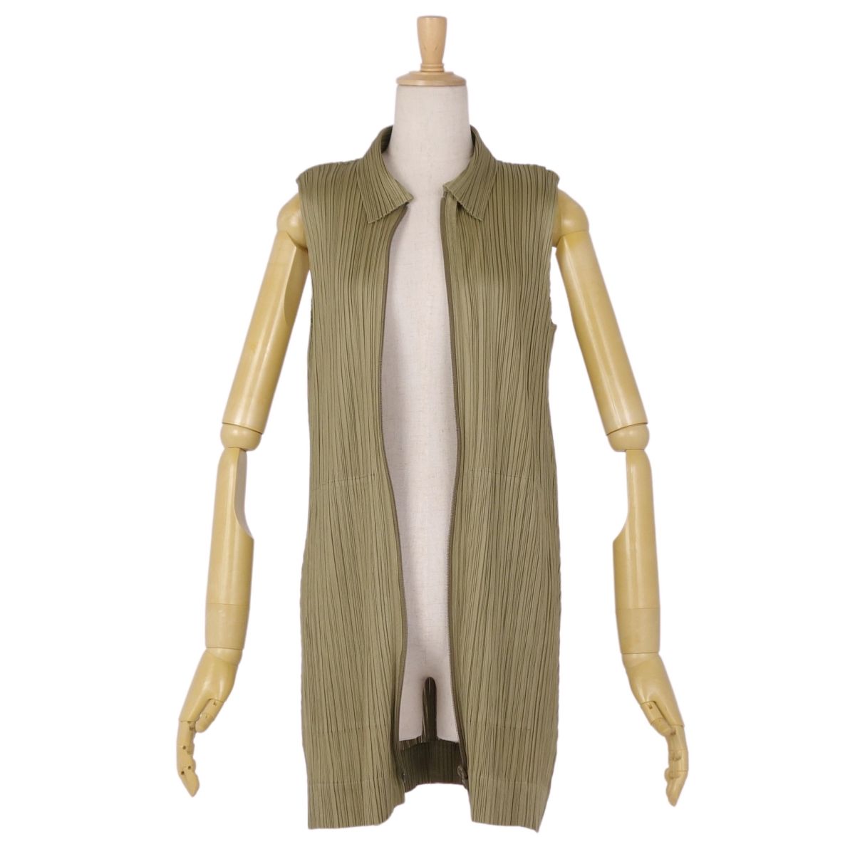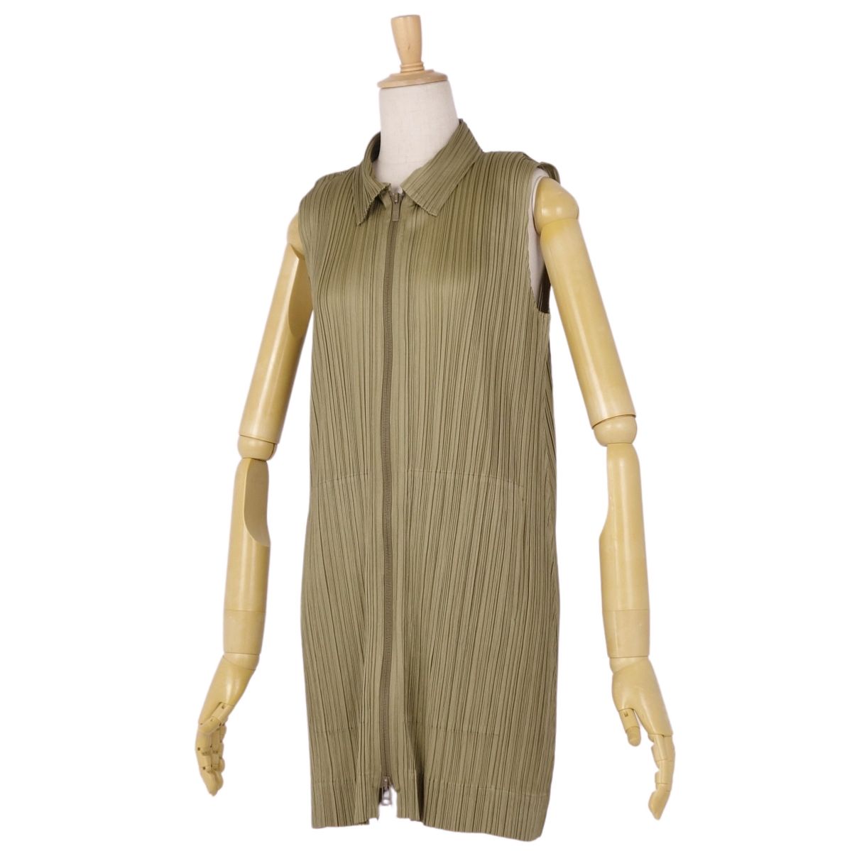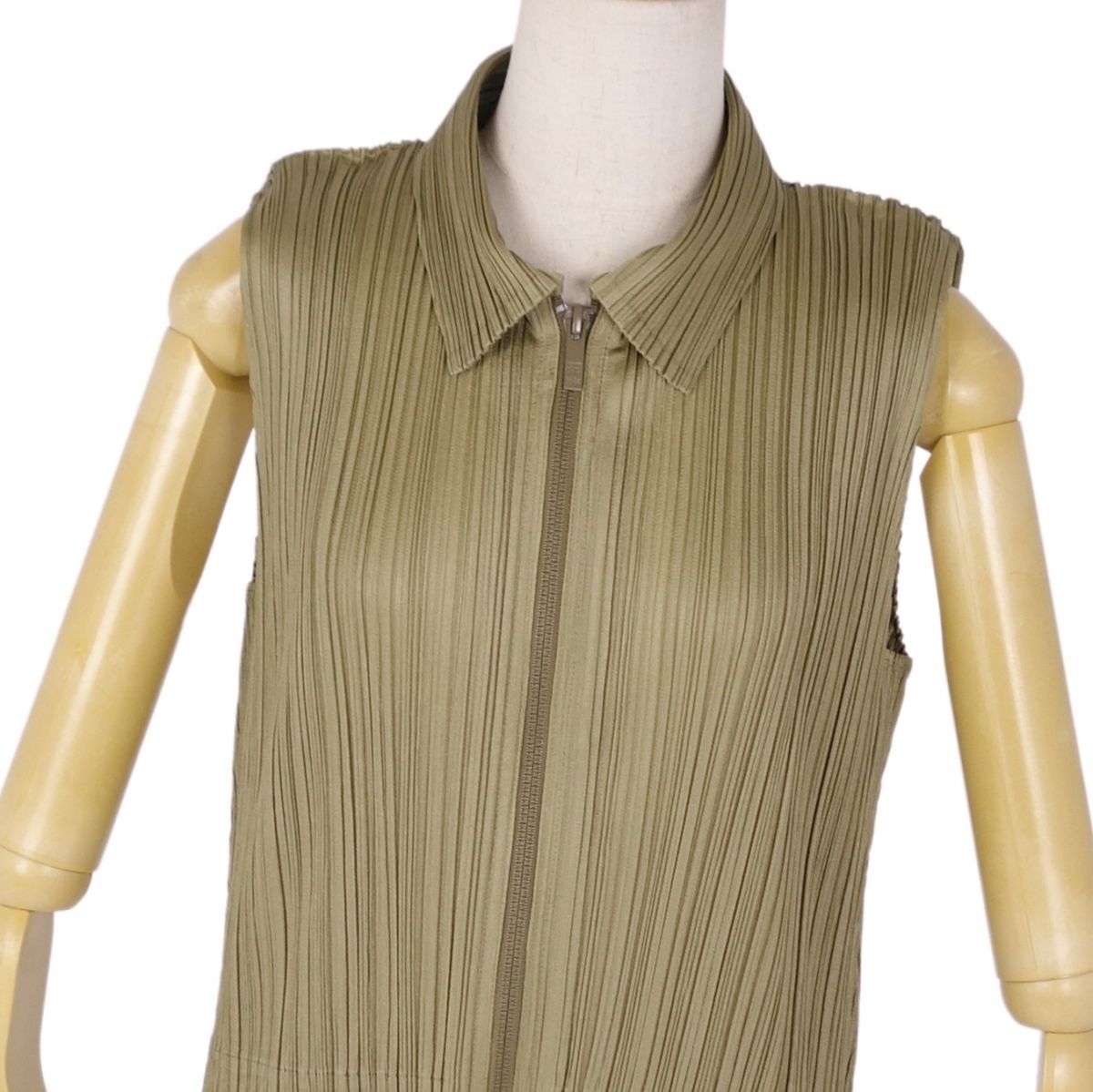 プリーツプリーズ イッセイミヤケ PLEATS PLEASE シャツ ブラウス ノースリーブ ジップアップ プリーツ トップス レディース カーキ サイズ3(L相当)