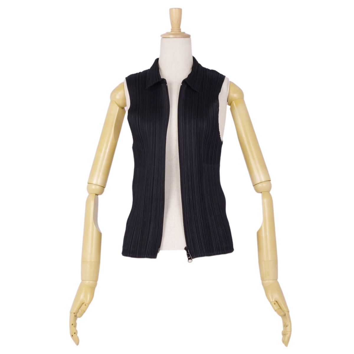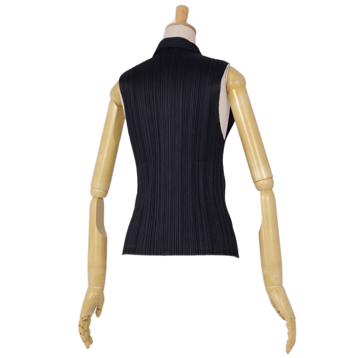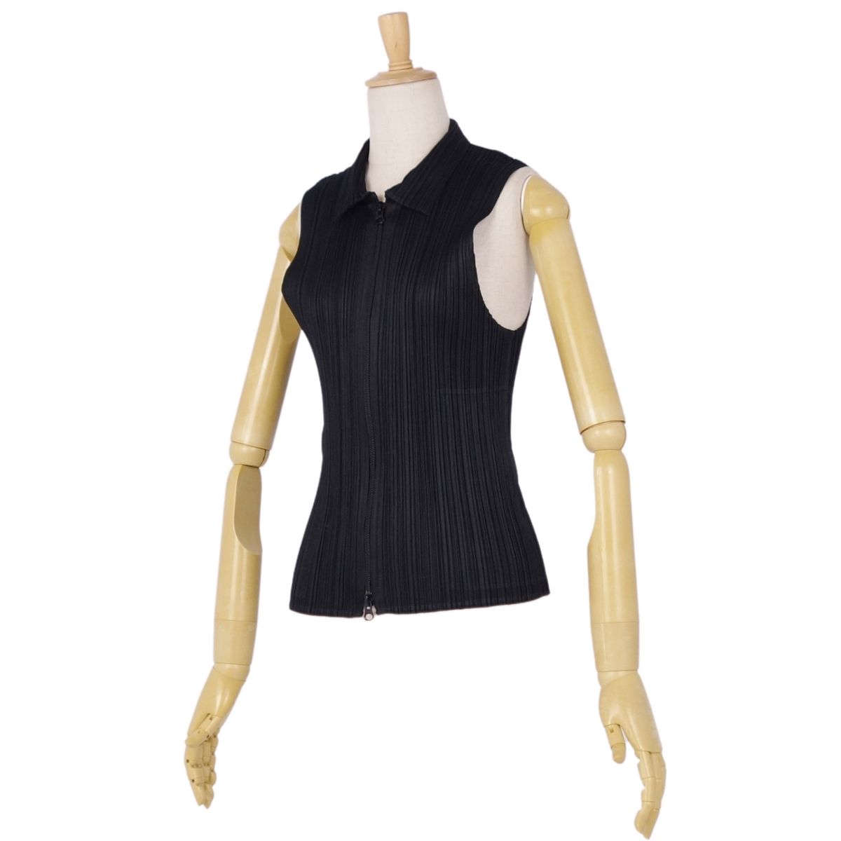 プリーツプリーズ イッセイミヤケ PLEATS PLEASE シャツ ブラウス ノースリーブ ジップアップ プリーツ トップス レディース ブラック サイズ3(L相当)