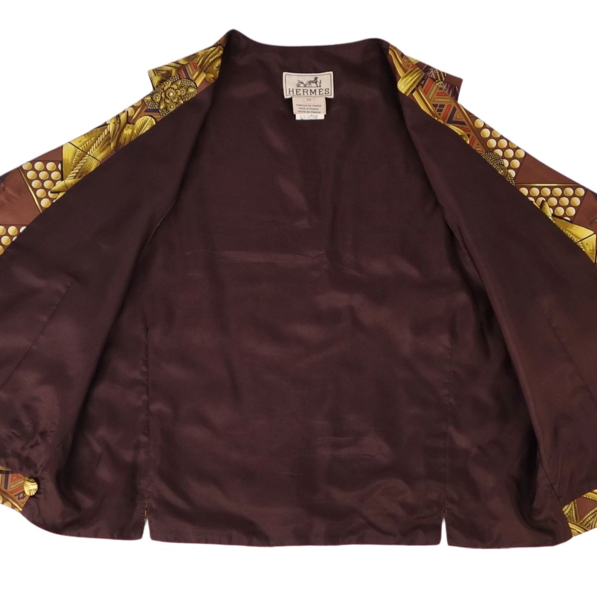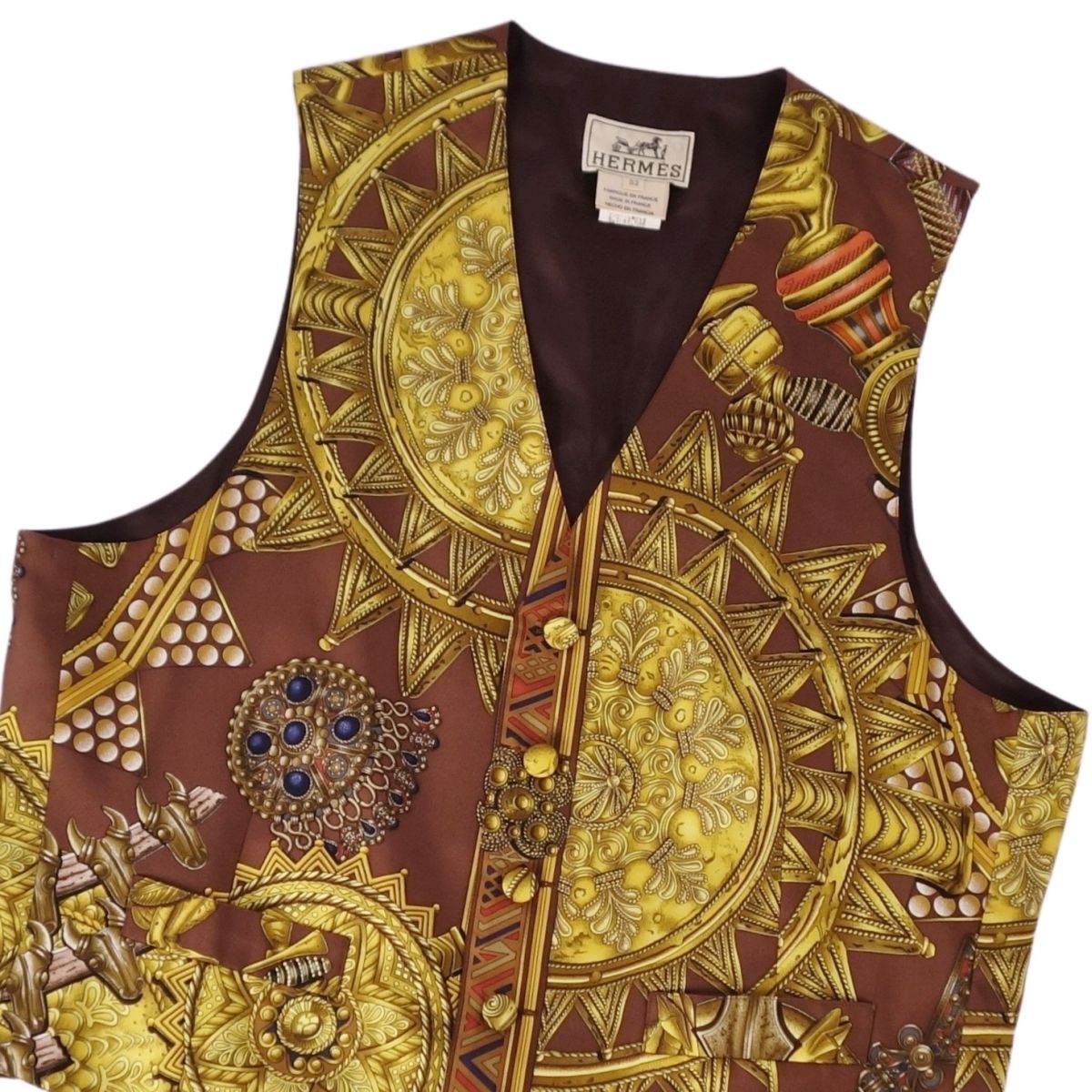 Vintage エルメス HERMES ベスト ジレ L’OR DES CHEFS 首長達の金 シルク トップス メンズ フランス製 マルチカラー サイズ52(L相当)