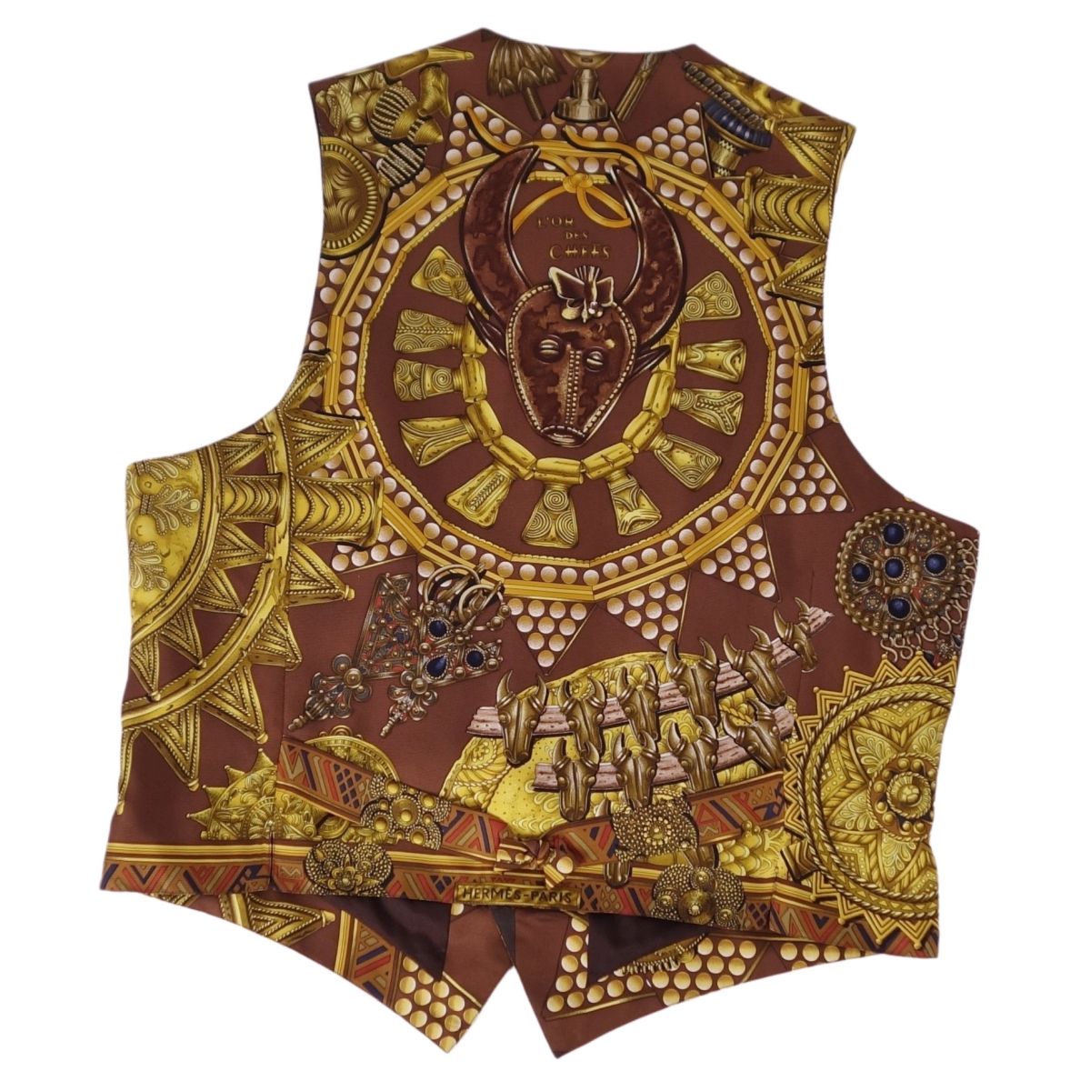 【美品】Vintage エルメス HERMES ベスト ジレ L’OR DES CHEFS 首長達の金 シルク トップス メンズ フランス製 52(L相当) マルチカラー【中古】