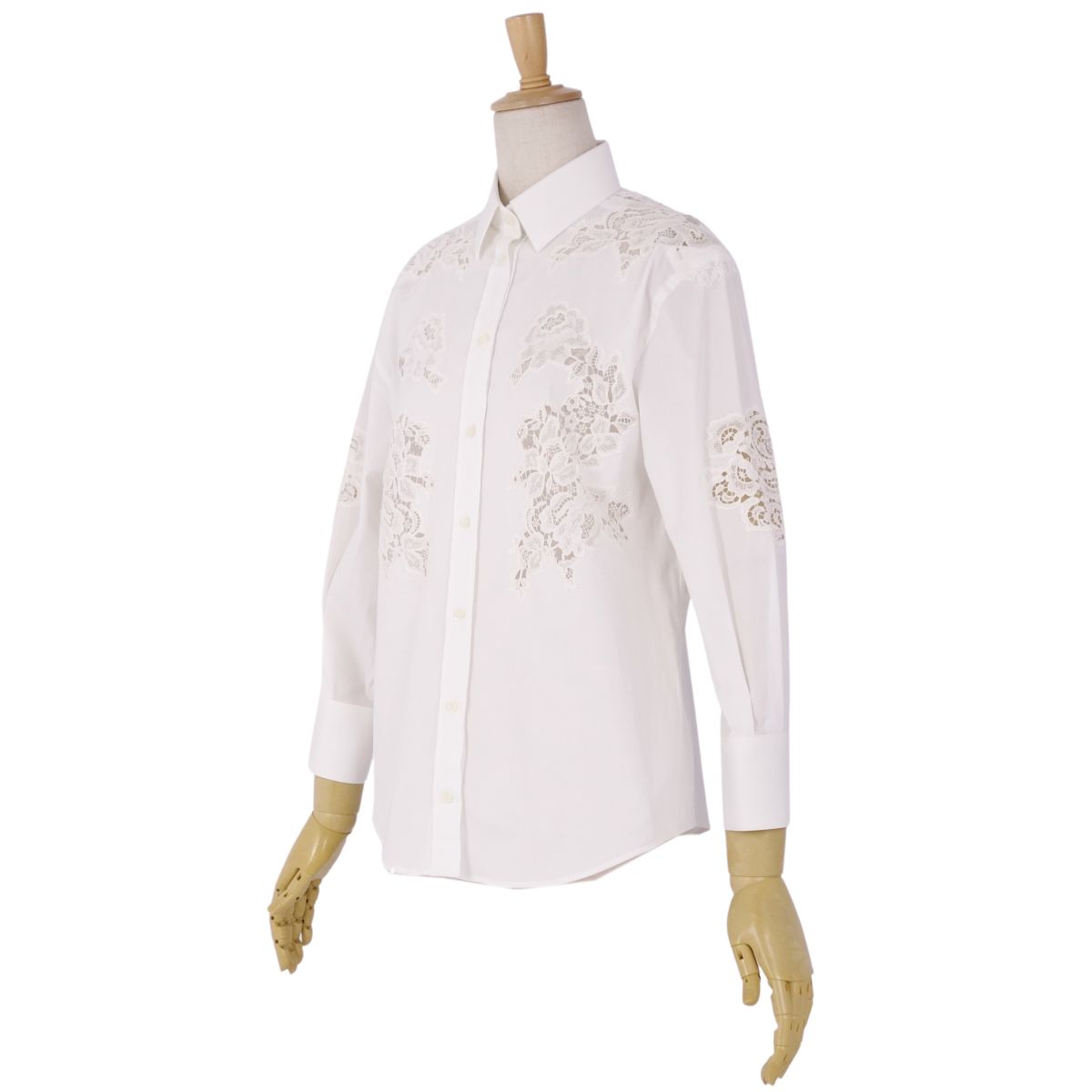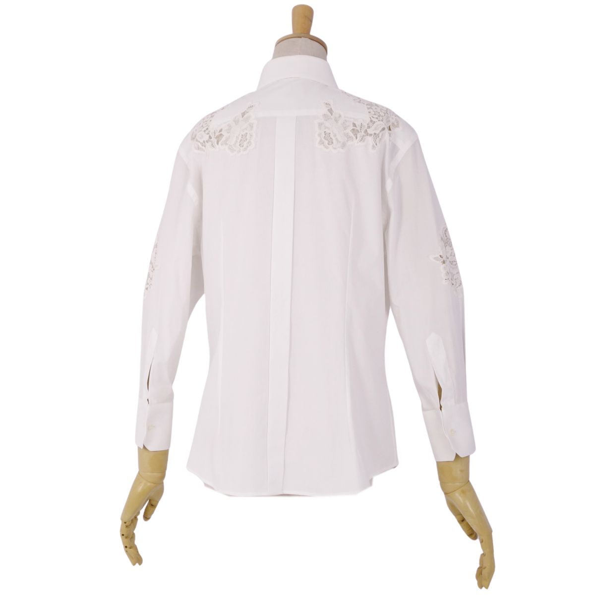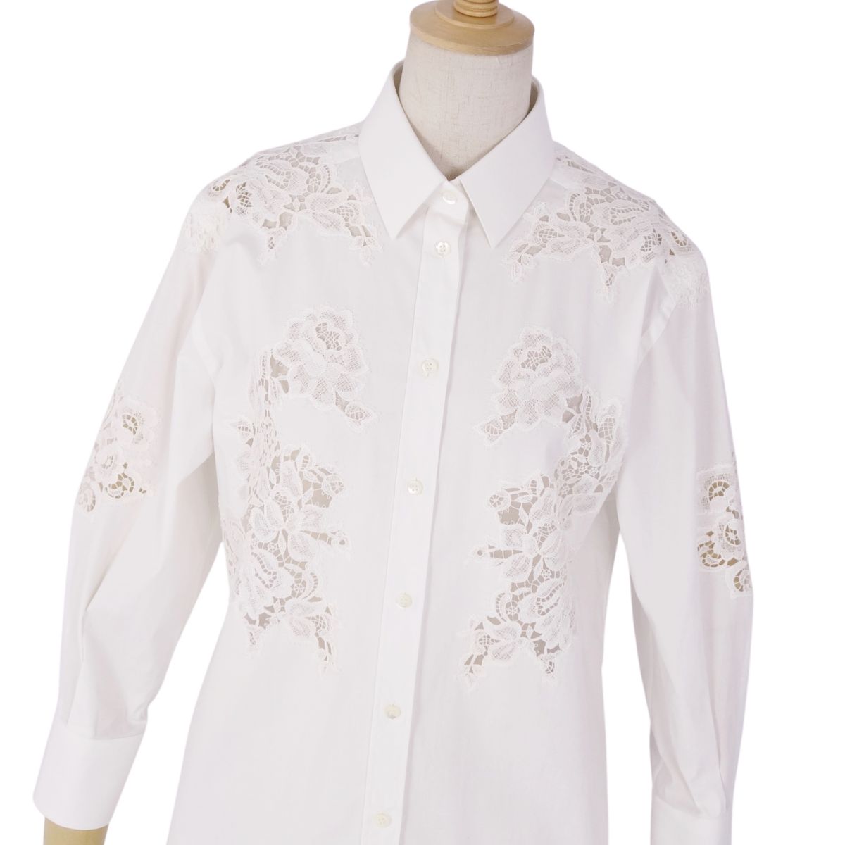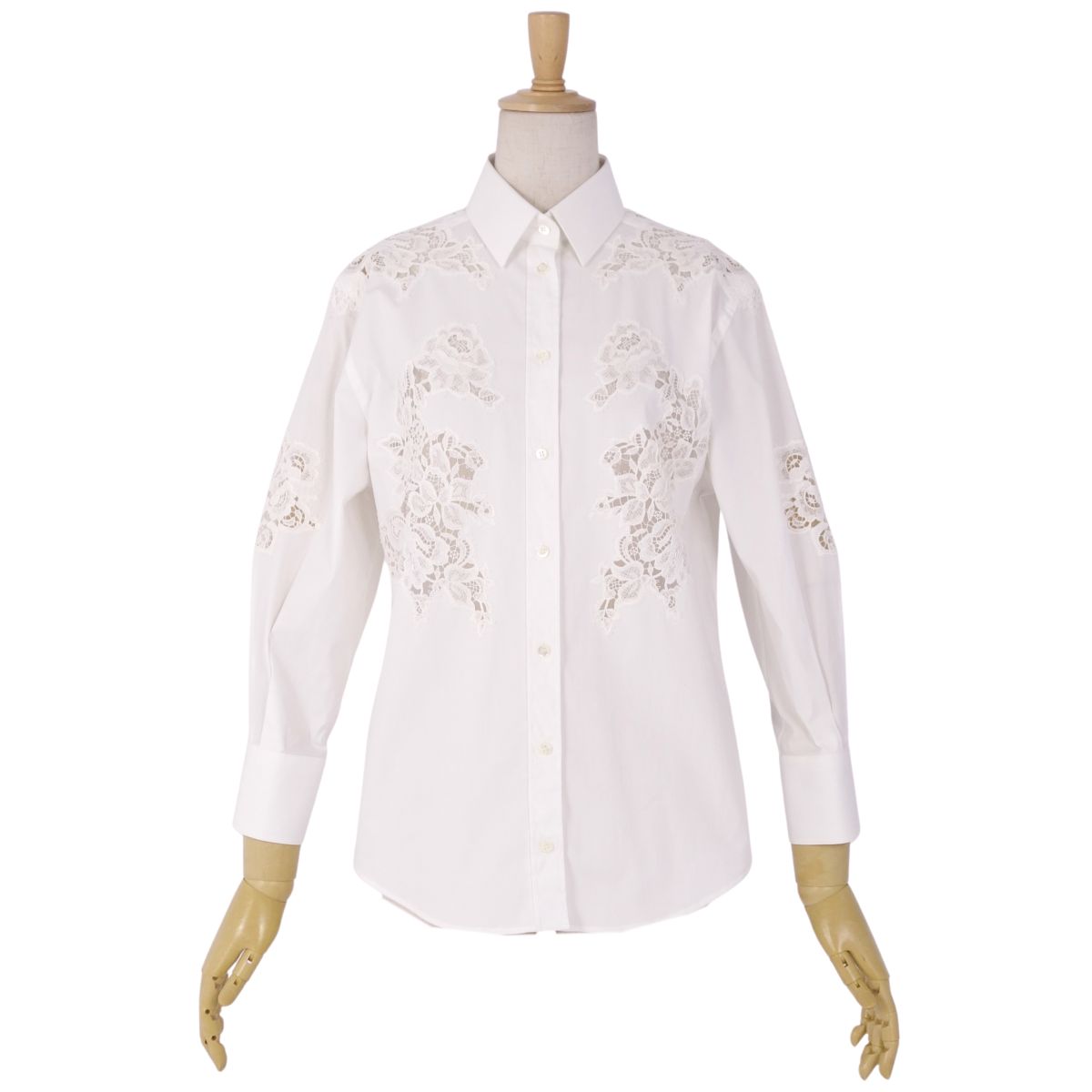 ドルチェ&ガッバーナ DOLCE&GABBANA シャツ ブラウス ロングスリーブ 長袖 レース コットン トップス レディース イタリア製 ホワイト サイズ36(S相当)