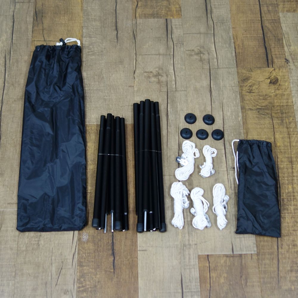 【付属品:前幕、インナーテント、グランドシート、フライシート、メインポール×2、サブポール×2、ロープ、ペグ、エンドキャップ、収納ケース】