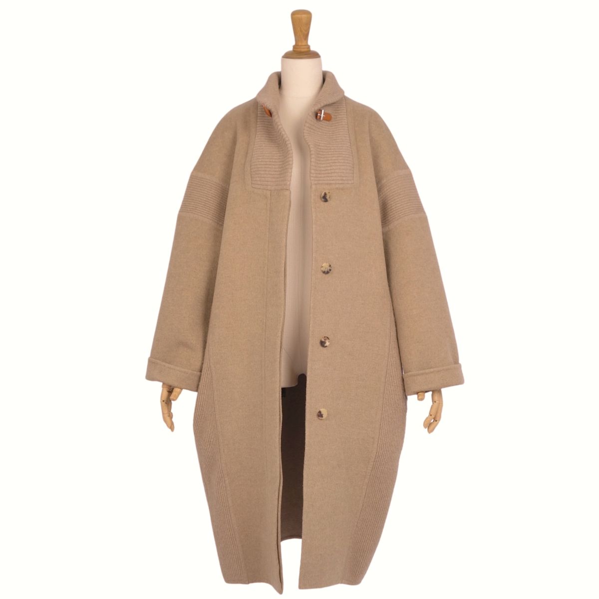 エルメス HERMES コート ロングコート カシミヤ100% ダブルフェイス セリエボタン 無地 アウター レディース キャメルブラウン サイズ34(S相当)