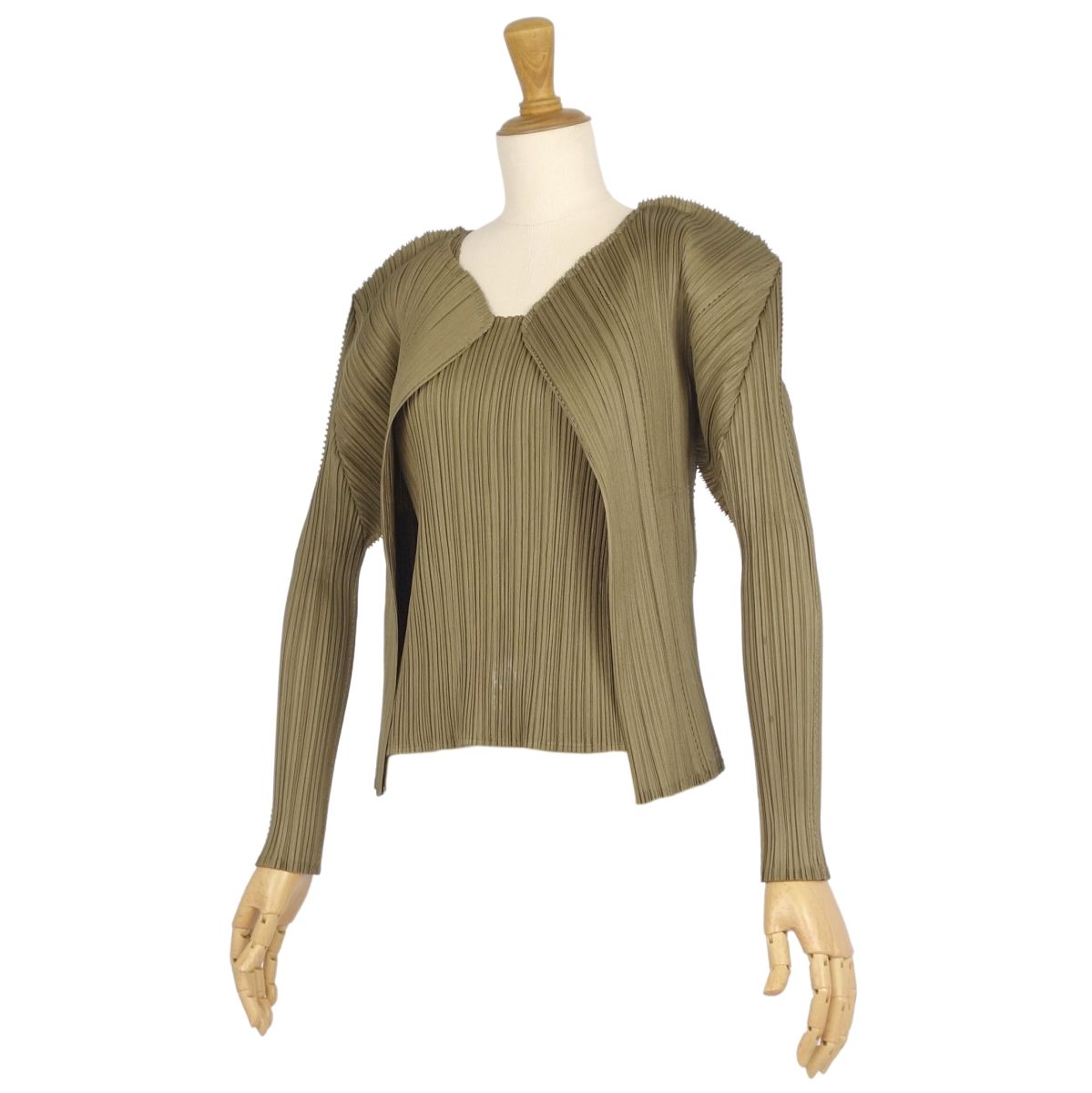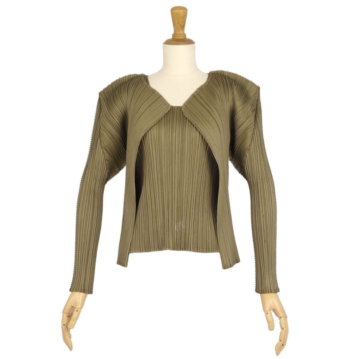 プリーツプリーズ イッセイミヤケ PLEATS PLEASE アンサンブル カーディガン プリーツ トップス レディース カーキグリーン サイズ3(L相当)