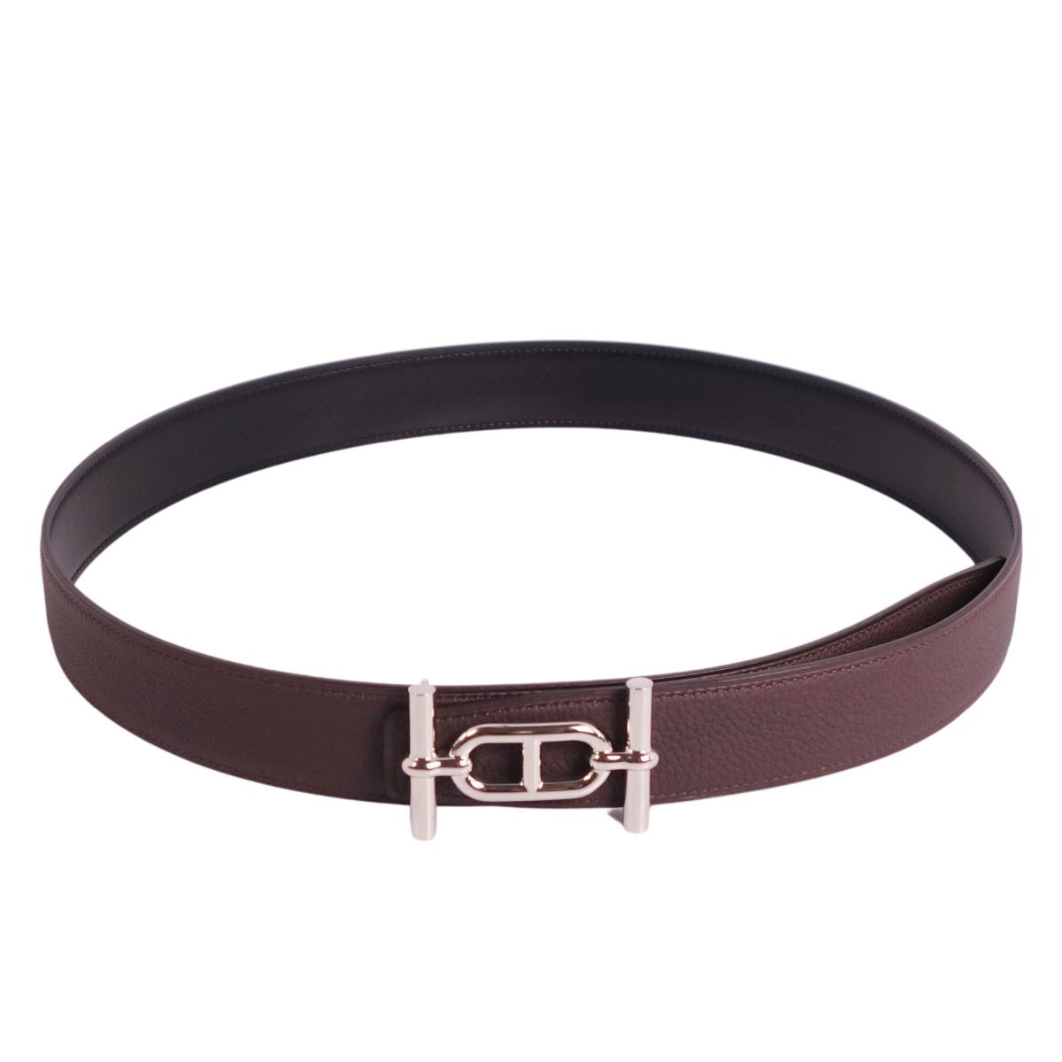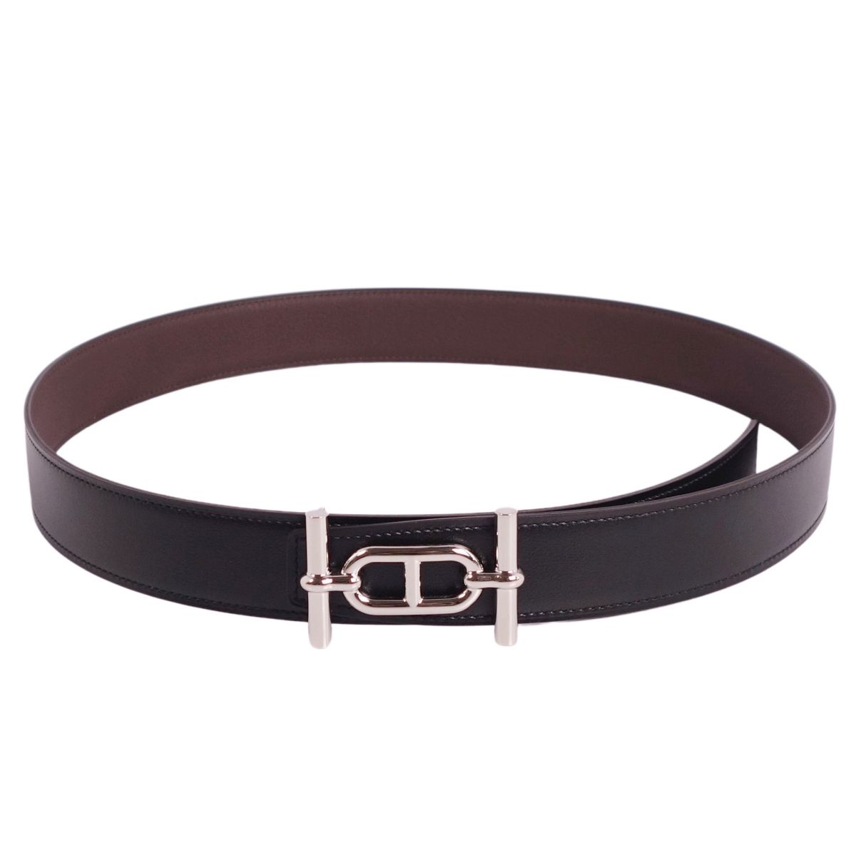 エルメス HERMES 2024年 ベルト リバーシブル アンクル シェーヌダンクル カーフレザー バックル メンズ ブラック/ブラウン サイズ85