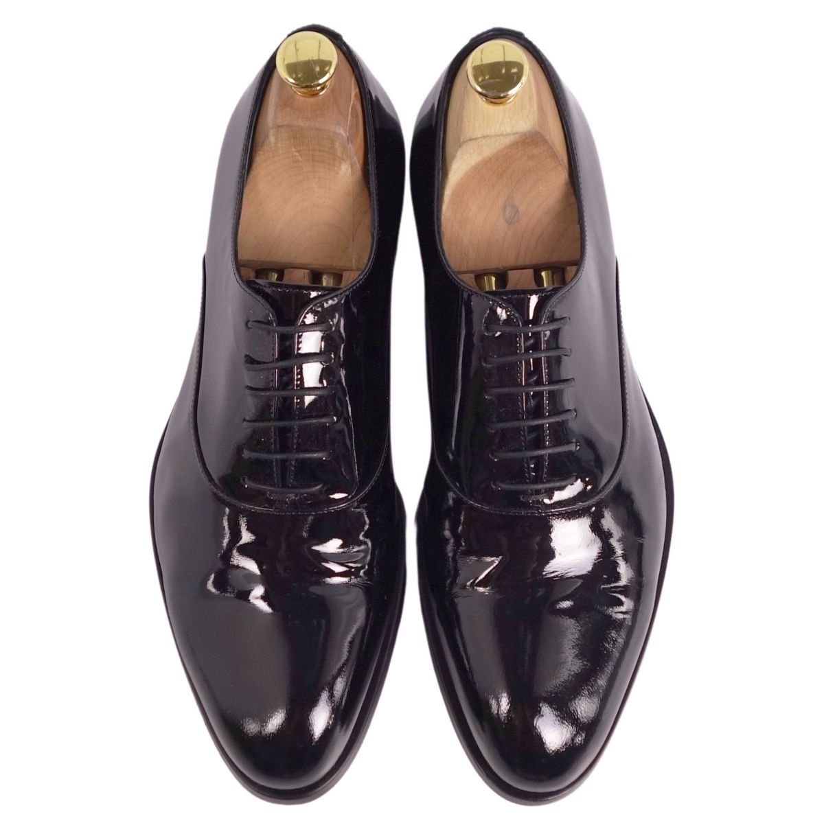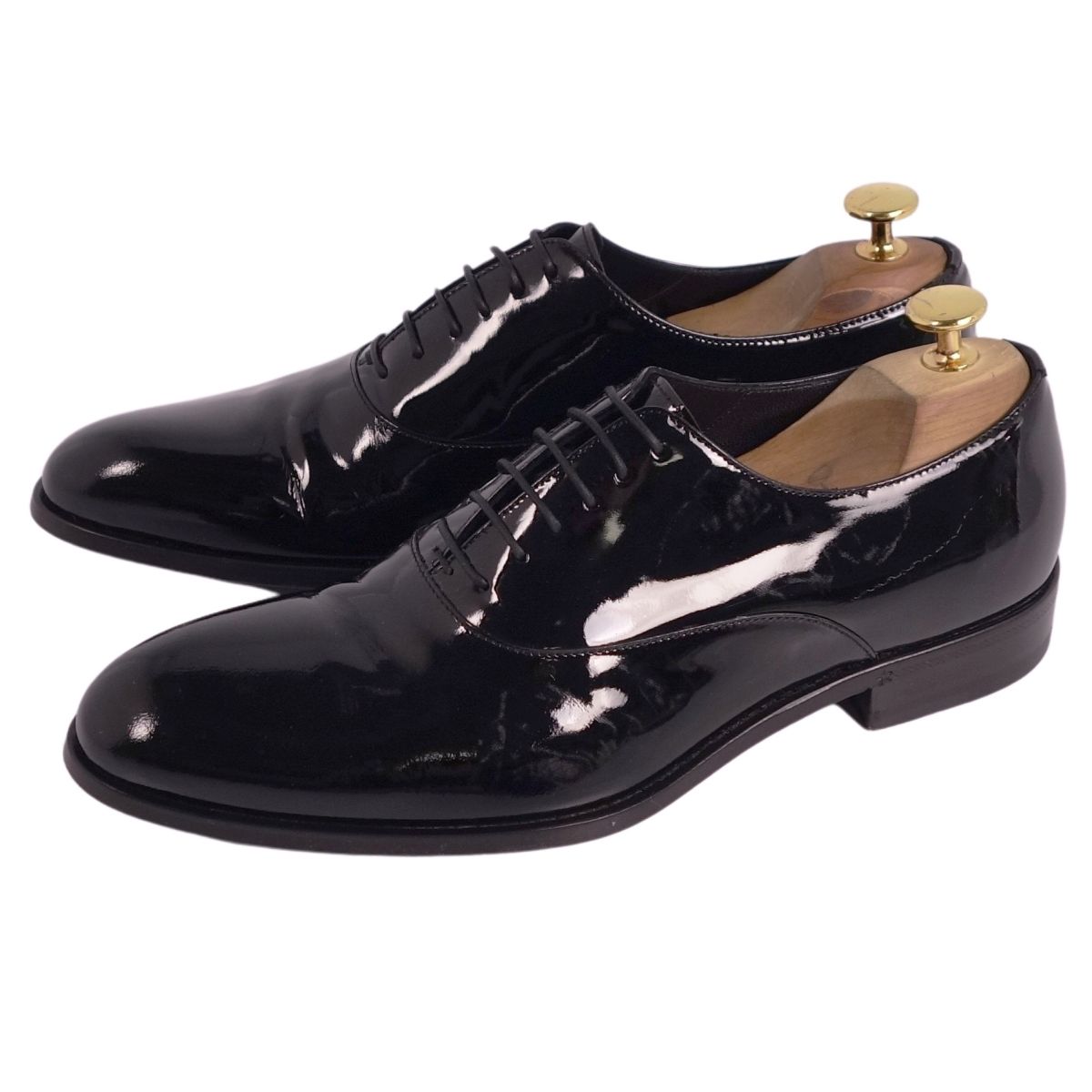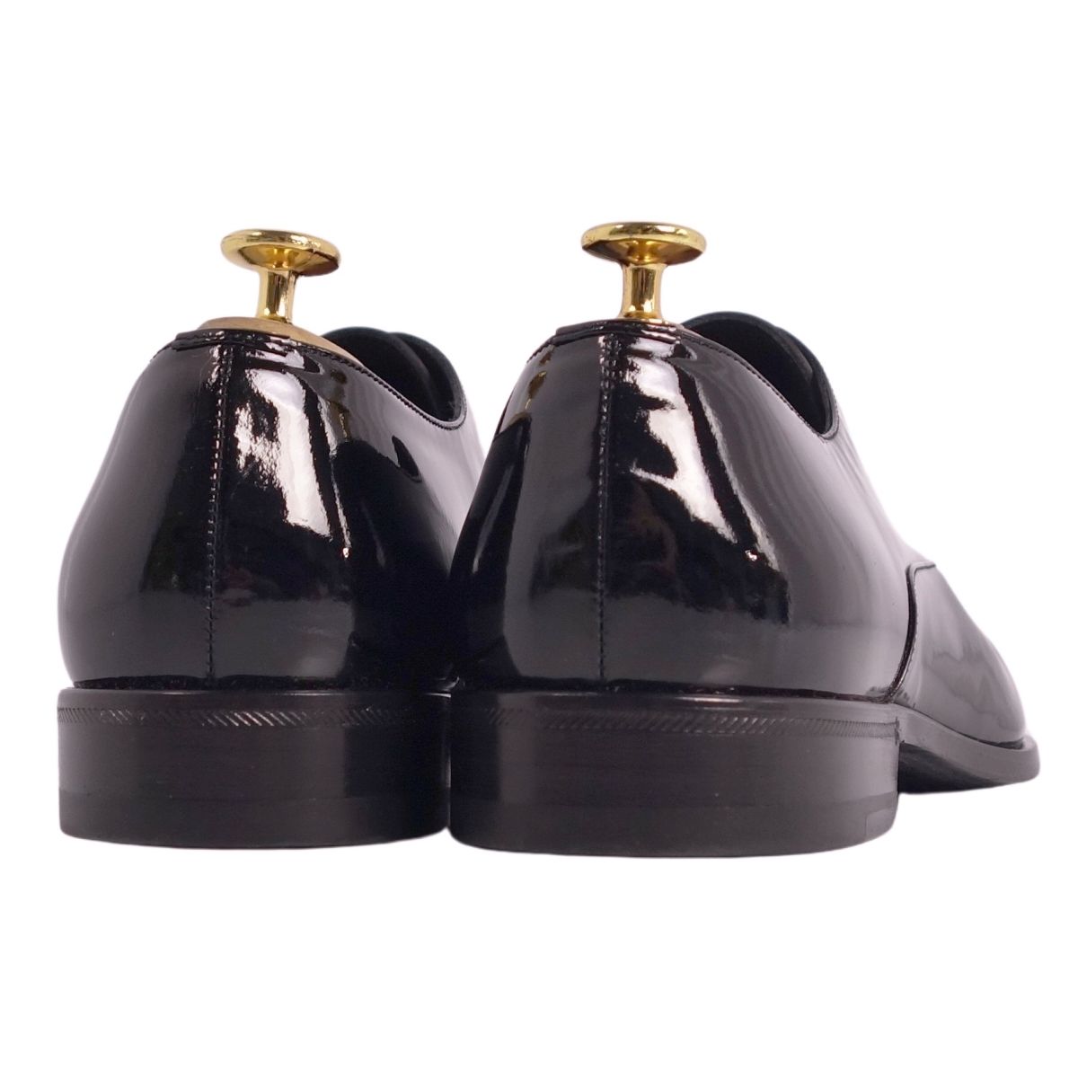 ジョルジオアルマーニ GIORGIO ARMANI レザーシューズ オックスフォード エナメルレザー ビジネスシューズ 革靴 メンズ ブラック サイズ40(25cm相当)