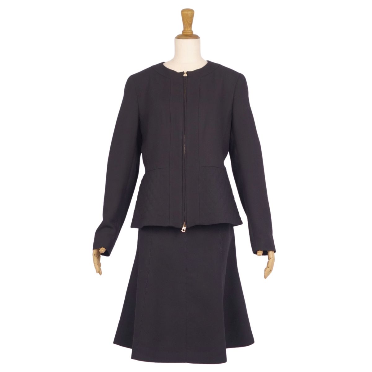 サルヴァトーレ フェラガモ Salvatore Ferragamo セットアップ スカートスーツ ウール ジャケット スカート レディース イタリア製 ブラック サイズジャケット:44 スカート:42