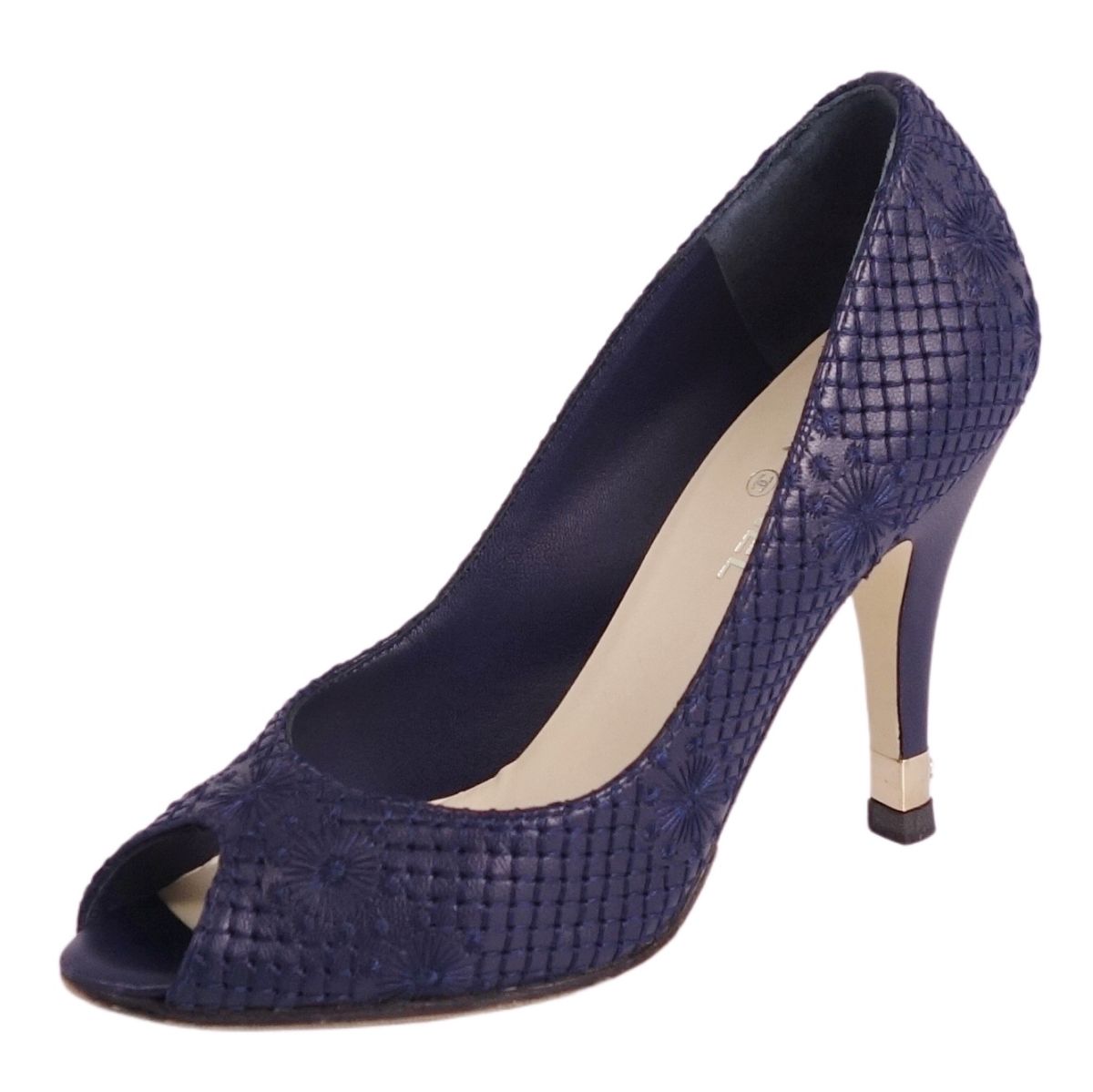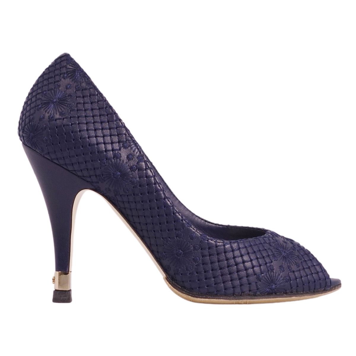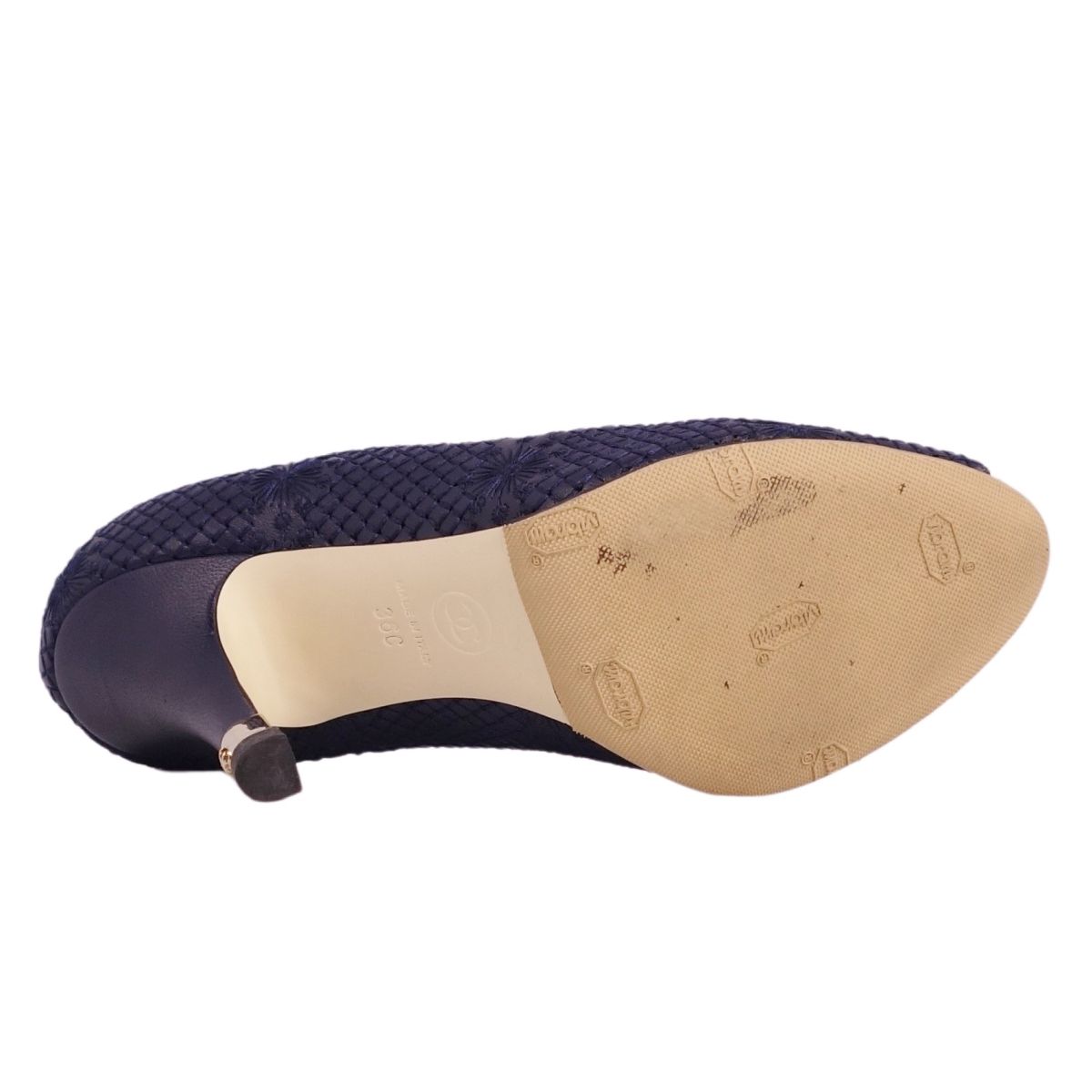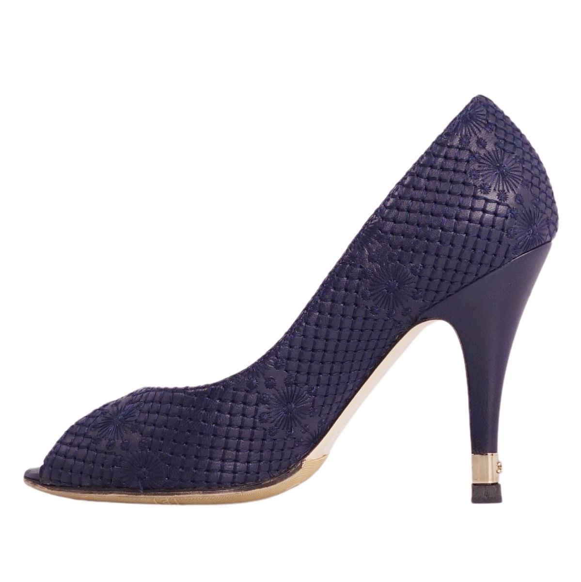 シャネル CHANEL パンプス オープントゥ 総柄 刺繍 レザー ココマーク シューズ レディース ネイビー サイズ36C