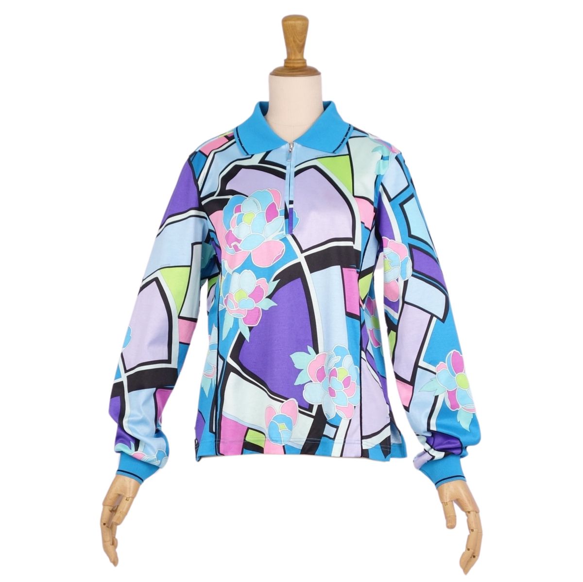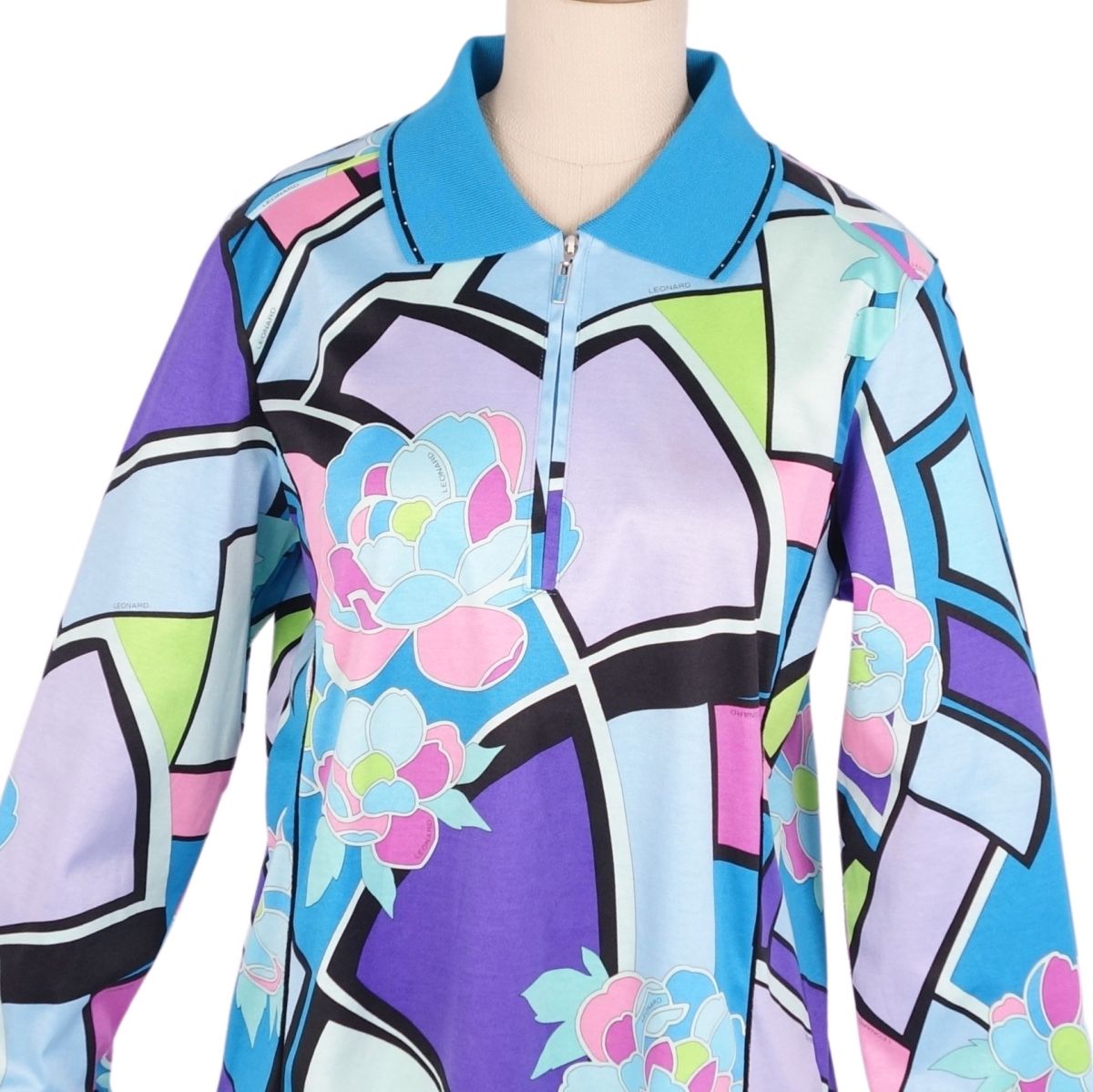レオナール LEONARD SPORT シャツ ブラウス ハーフジップ ロングスリーブ 長袖 花柄 コットン トップス レディース マルチカラー サイズ42(L相当)