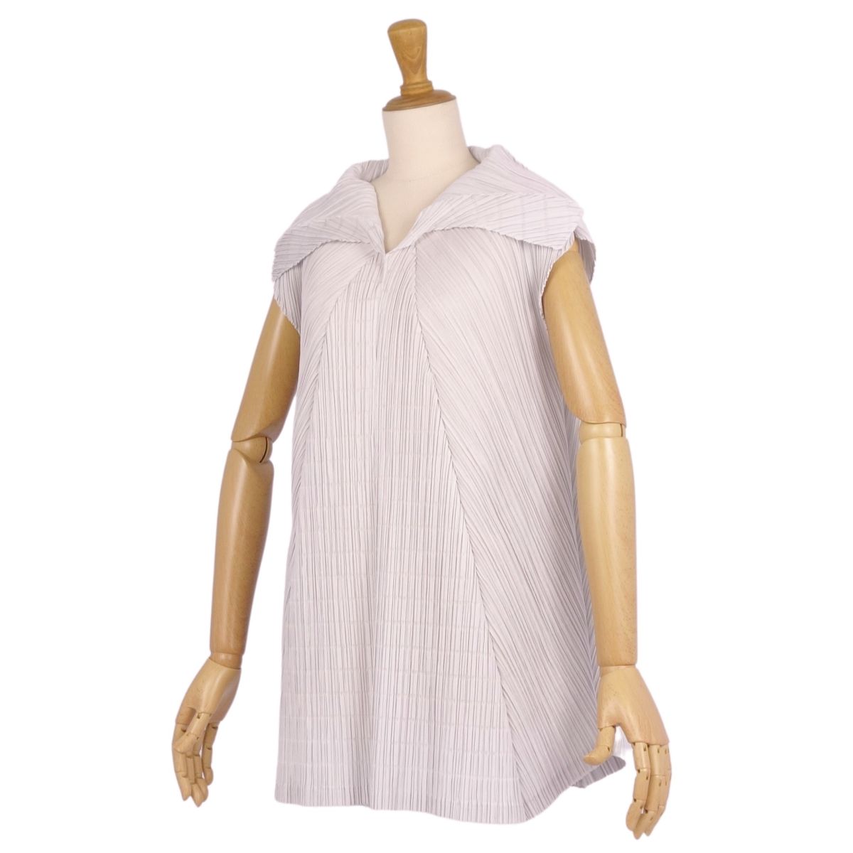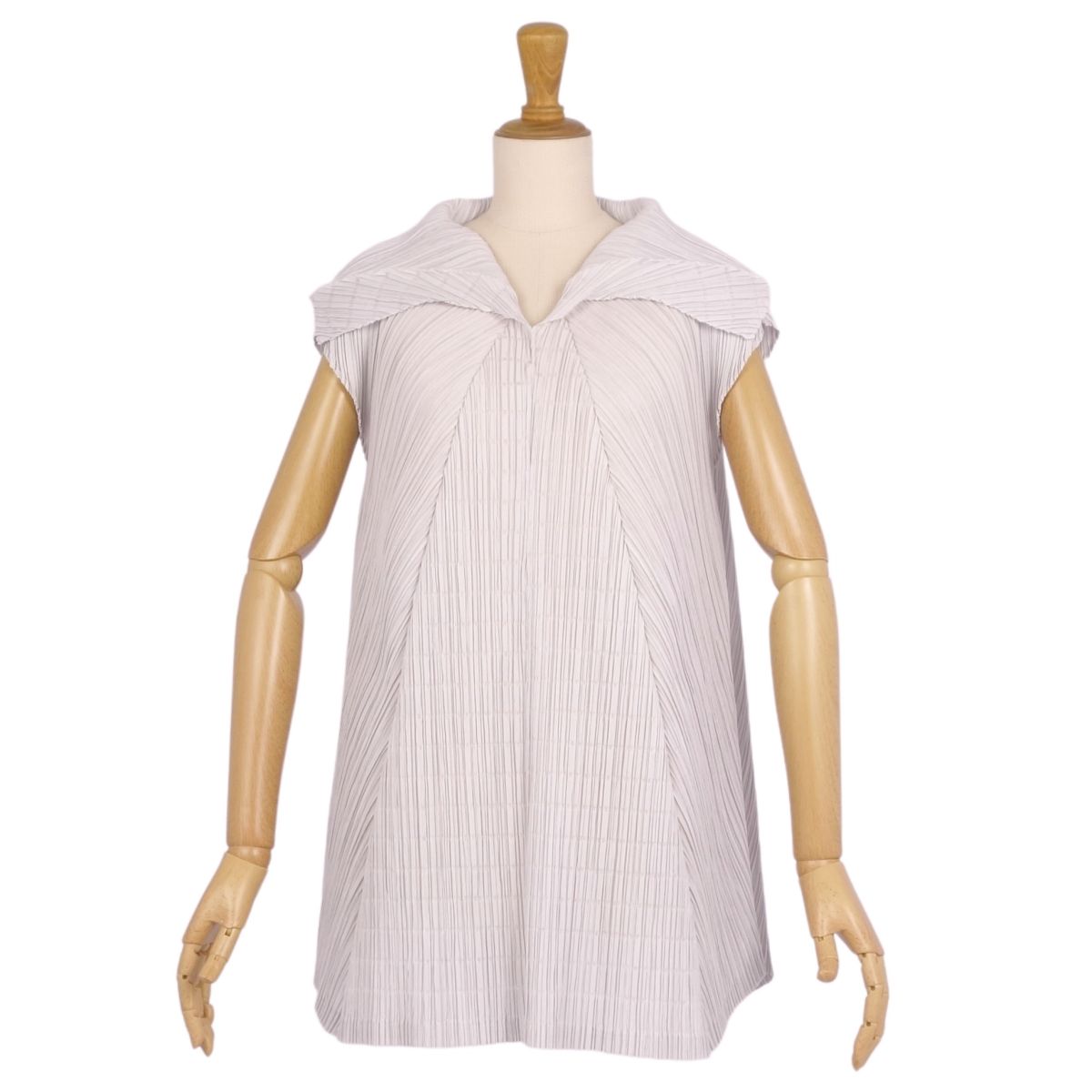 プリーツプリーズ イッセイミヤケ PLEATS PLEASE シャツ ブラウス ノースリーブ プリーツ トップス レディース グレー サイズ3(L相当)