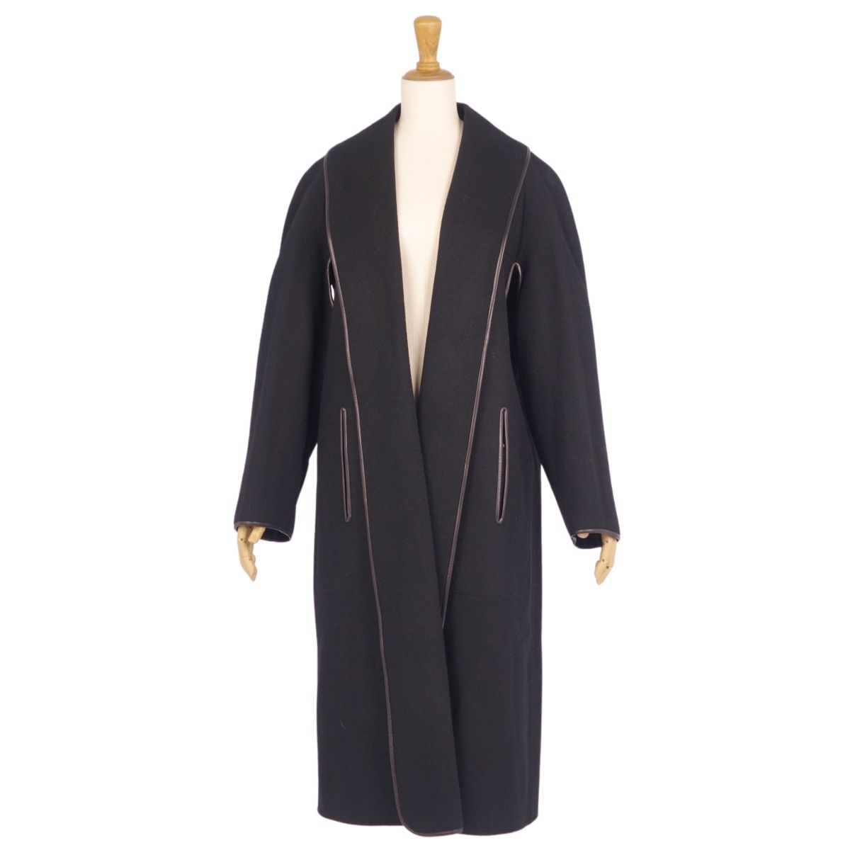 【極美品】エルメス HERMES マルジェラ期 コート 1998AW ロングコート ライナーコート キャメルヘアー ボタンレス アウター レディース フランス製 34(S相当) ブラック【中古】
