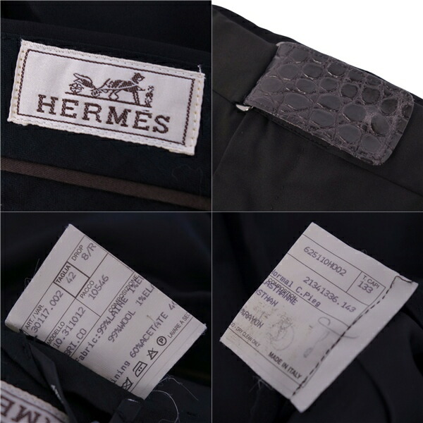 商品名 【美品】エルメス HERMES パンツ ロングパンツ スラックス ウール クロコダイル ボトムス メンズ イタリア製 42 ブラック【中古】