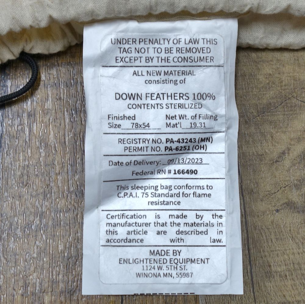 エンライテンド イクイップメント ENLIGHTENED EQUIPMENT Revelation 850 10F Down Ver キルト 掛け布団 寝袋 ダウン シュラフ – サイズ-