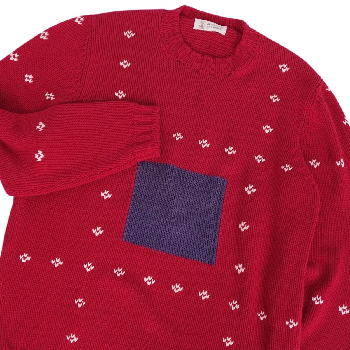 商品名 【美品】ブルネロクチネリ BRUNELLO CUCINELLI ニット セーター プルオーバー コットン トップス メンズ M レッド【中古】