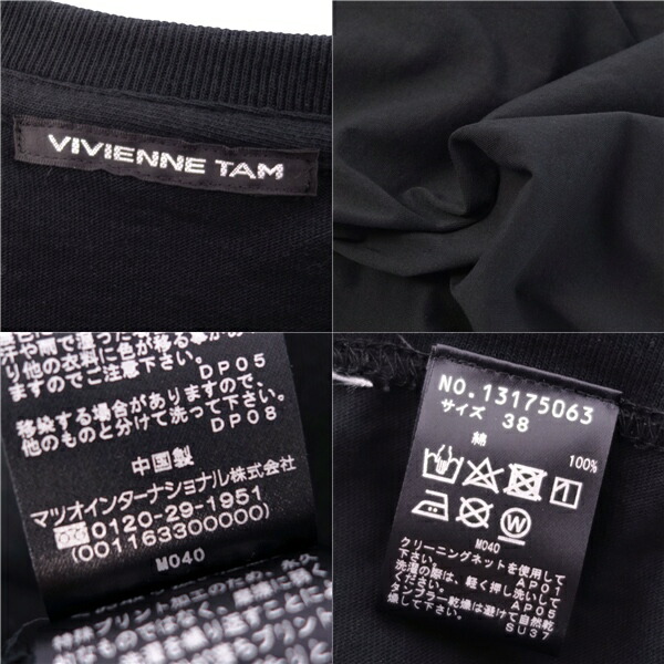 商品名 【新古品】ヴィヴィアンタム Vivienne Tam Tシャツ カットソー ロングスリーブ 長袖 コットン トップス レディース 38(M相当) ブラック【中古】