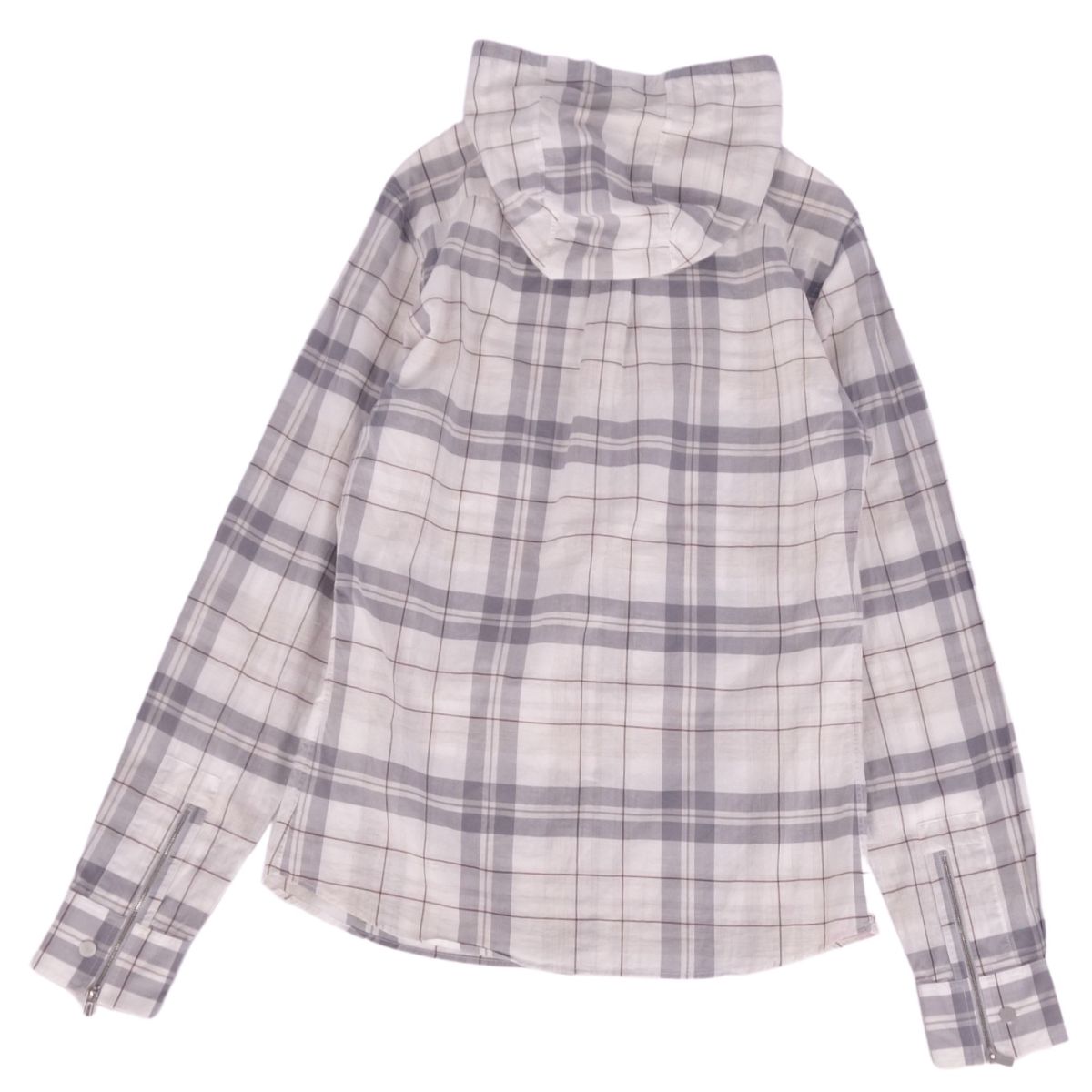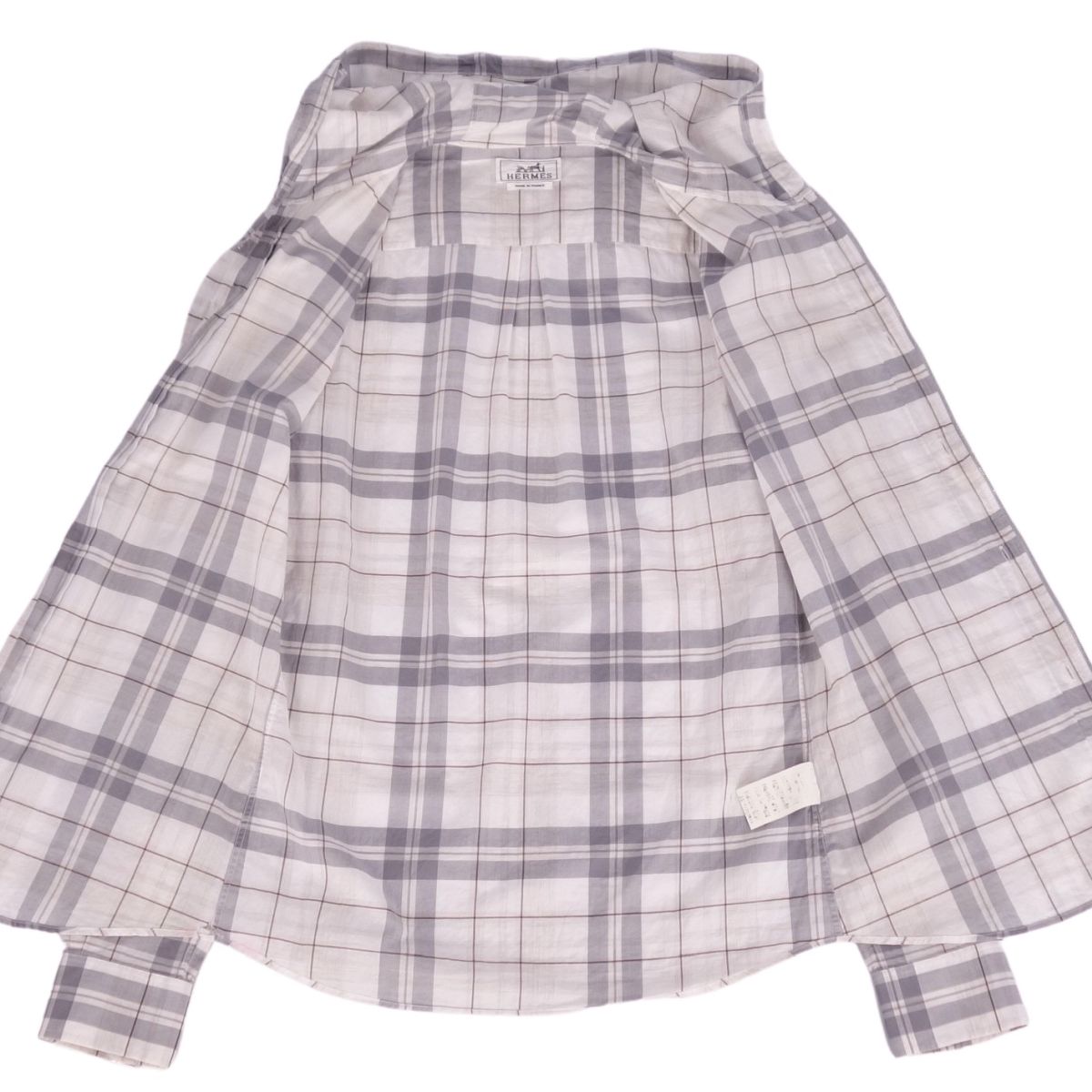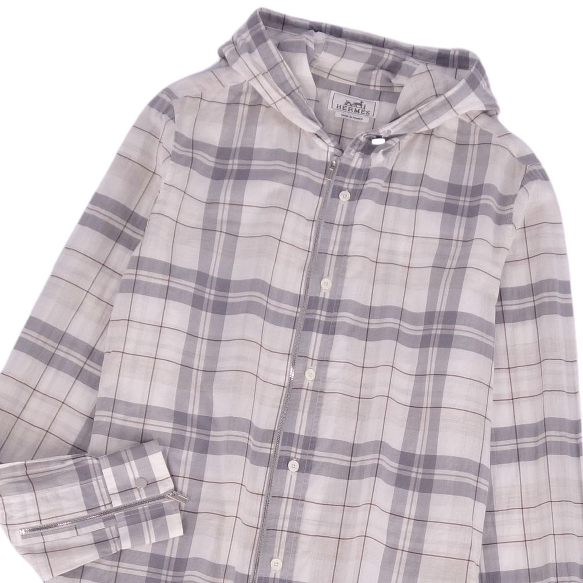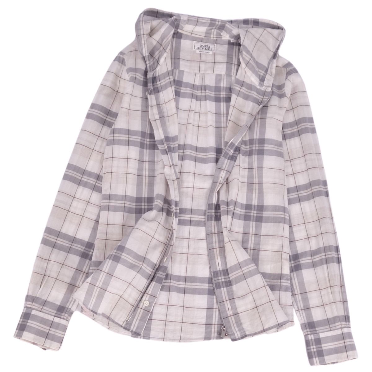 商品名 エルメス HERMES シャツ フード付き ロングスリーブ 長袖 チェック コットン トップス メンズ フランス製 37/14.5(M相当) グレー【中古】