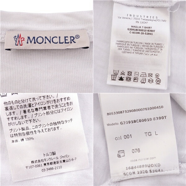 | 商品名 | 【美品】モンクレール MONCLER Tシャツ 2020 カットソー ショートスリーブ 半袖 コットン トップス メンズ L ホワイト【中古】 |