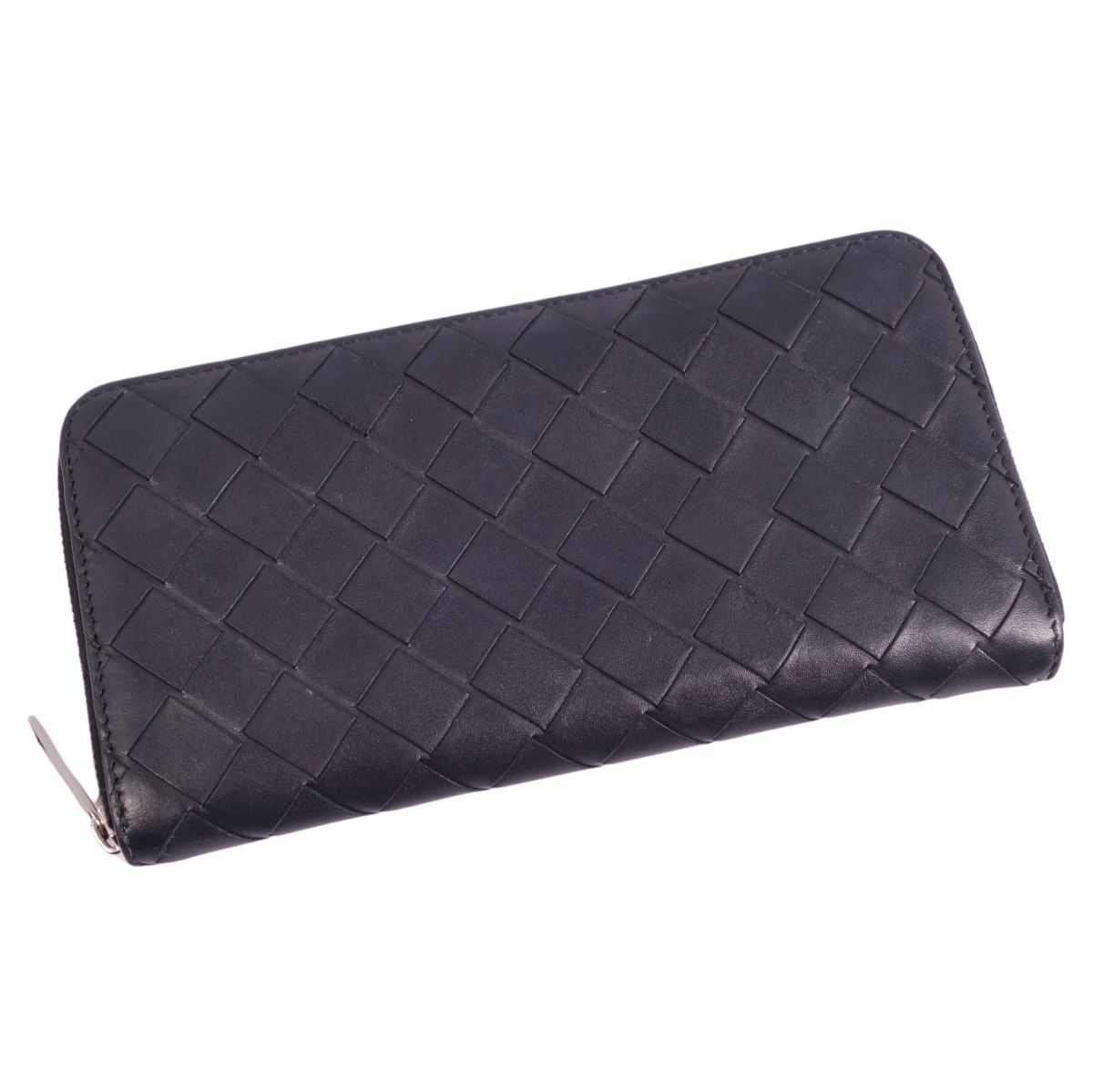 ボッテガヴェネタ BOTTEGA VENETA 財布 ロングウォレット ラウンドファスナー イントレチャート レザー メンズ レディース イタリア製 ブラック サイズ-