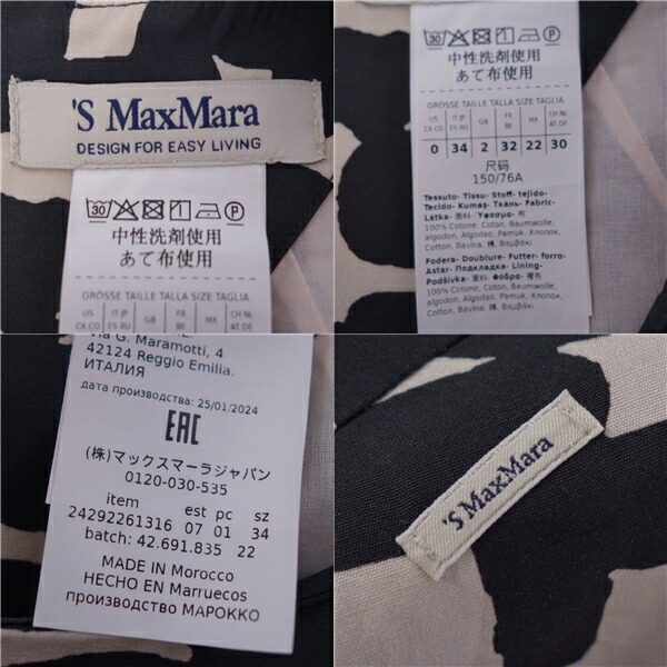 | 商品名 | 【極美品】エスマックスマーラ S MaxMara 2024 ワンピース ドレス ショートスリーブ 半袖 総柄 ロングワンピース コットン レディース IT34 FR32 (S相当) ブラック/クリーム【中古】 |