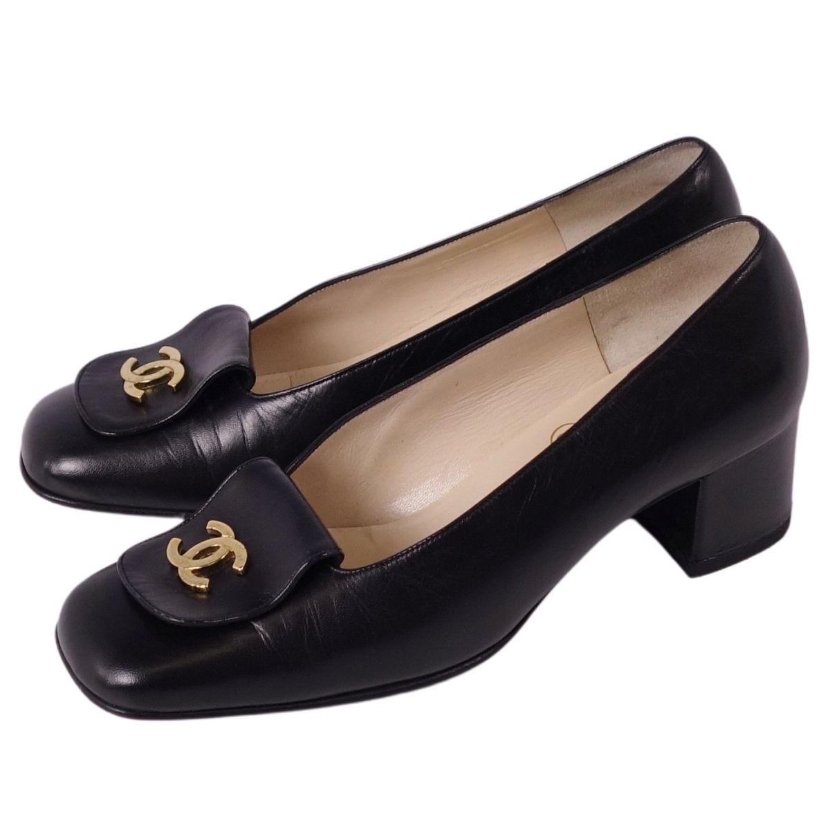 Vintage シャネル CHANEL パンプス ココマーク レザー ヒール シューズ 靴 レディース フランス製 ブラック サイズ35.5(22.5cm相当)