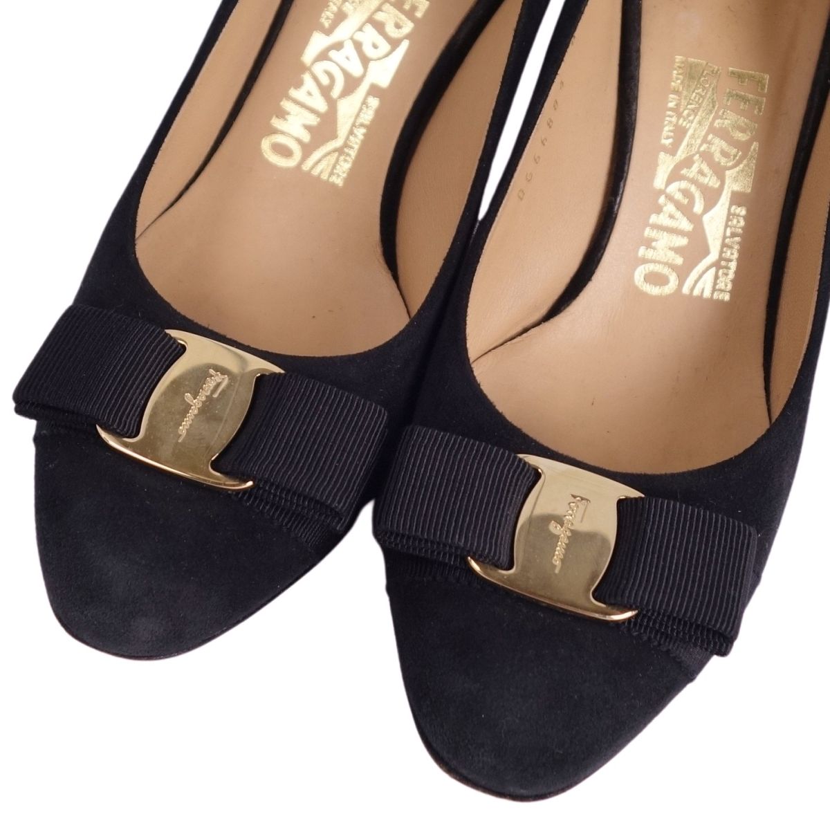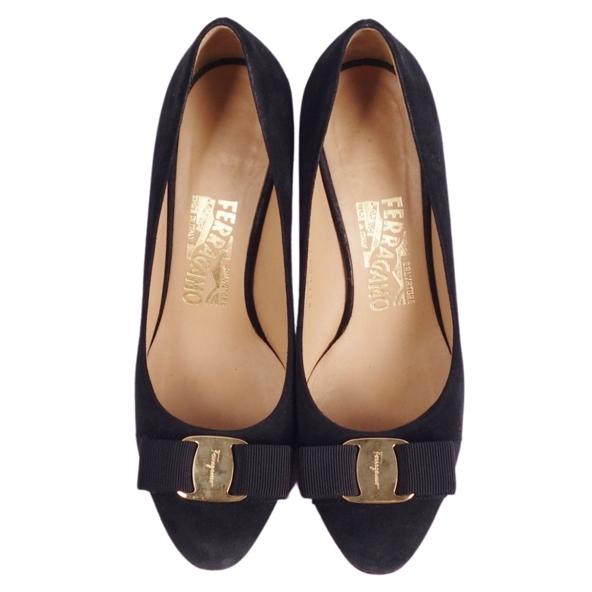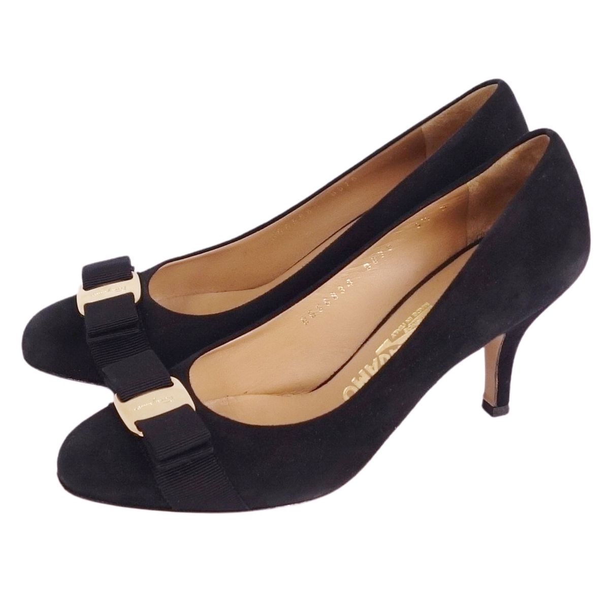 サルヴァトーレ フェラガモ Salvatore Ferragamo パンプス ヴァラ スウェードレザー ヒール シューズ 靴 レディース イタリア製 ブラック サイズ5.5D(23cm相当)