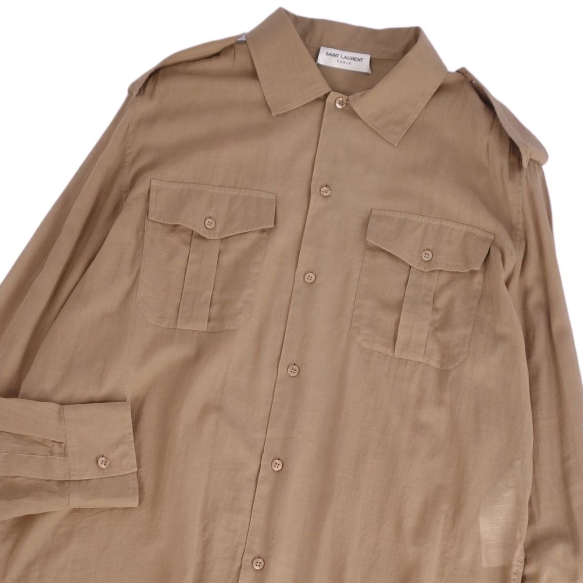 【美品】サンローラン パリ SAINT LAURENT PARIS シャツ 2022 ロングスリーブ コットン トップス メンズ イタリア製 41(L相当) ブラウン【中古】