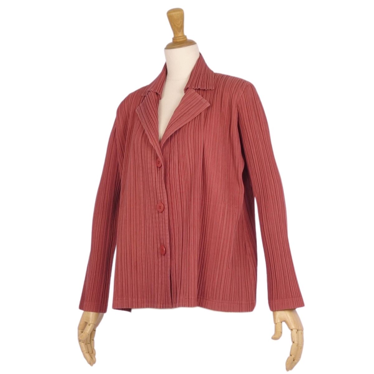 プリーツプリーズ イッセイミヤケ PLEATS PLEASE ジャケット テーラード プリーツ コットン アウター レディース レッド サイズ3(L相当)