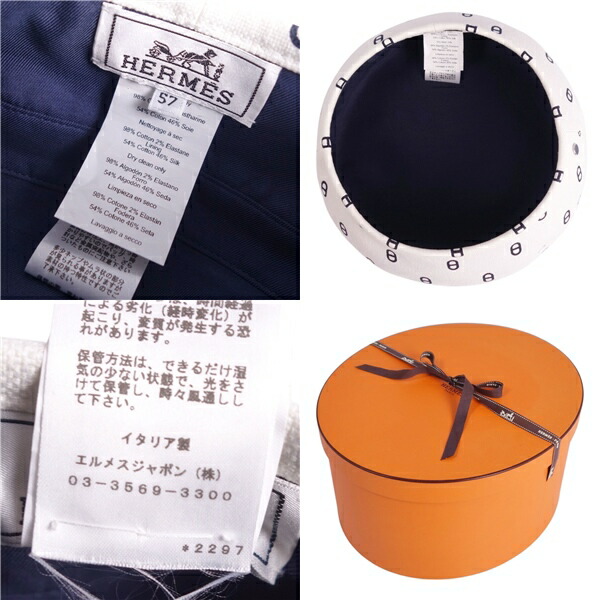 エルメス HERMES 帽子 ベレー帽 サントノーレ シェーヌダンク キャンバス レディース イタリア製 ホワイト サイズ57
