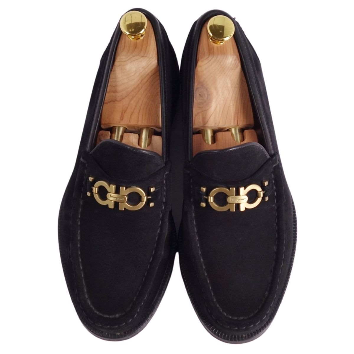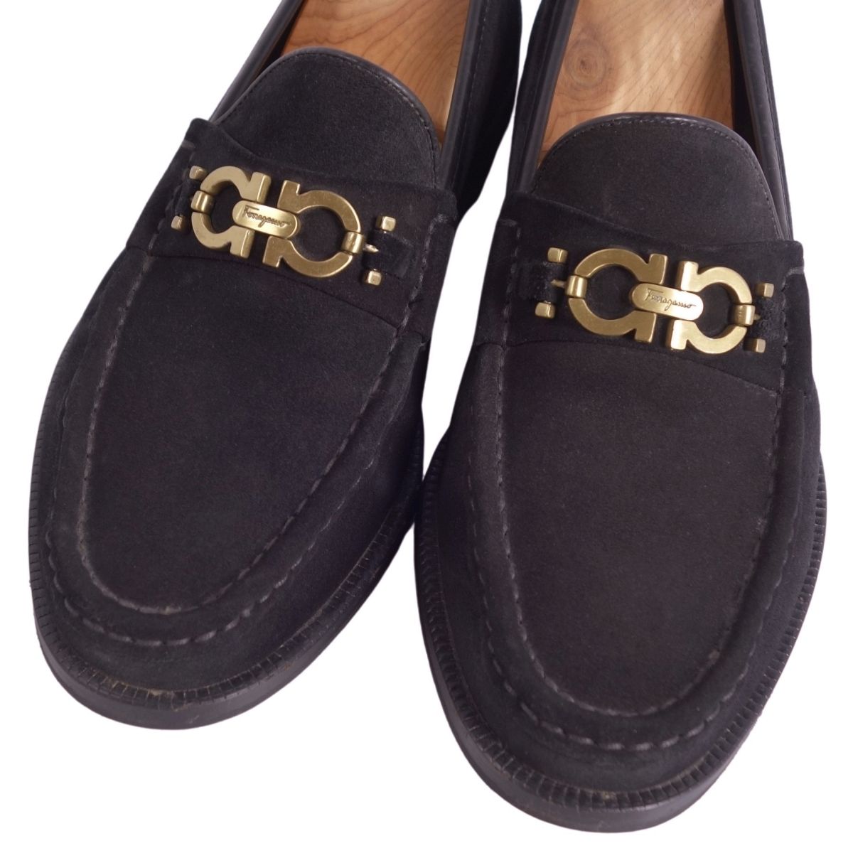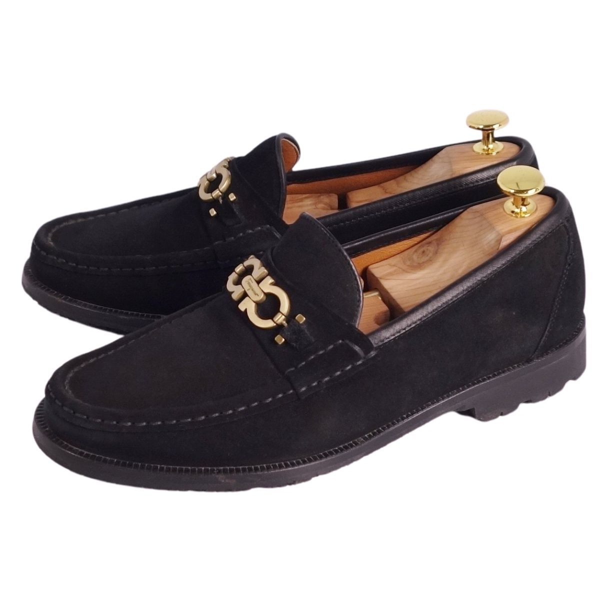 サルヴァトーレ フェラガモ Salvatore Ferragamo ローファー モカシン ガンチーニ スウェードレザー シューズ 靴 メンズ イタリア製 ブラック サイズ7.5EE(25.5cm相当)