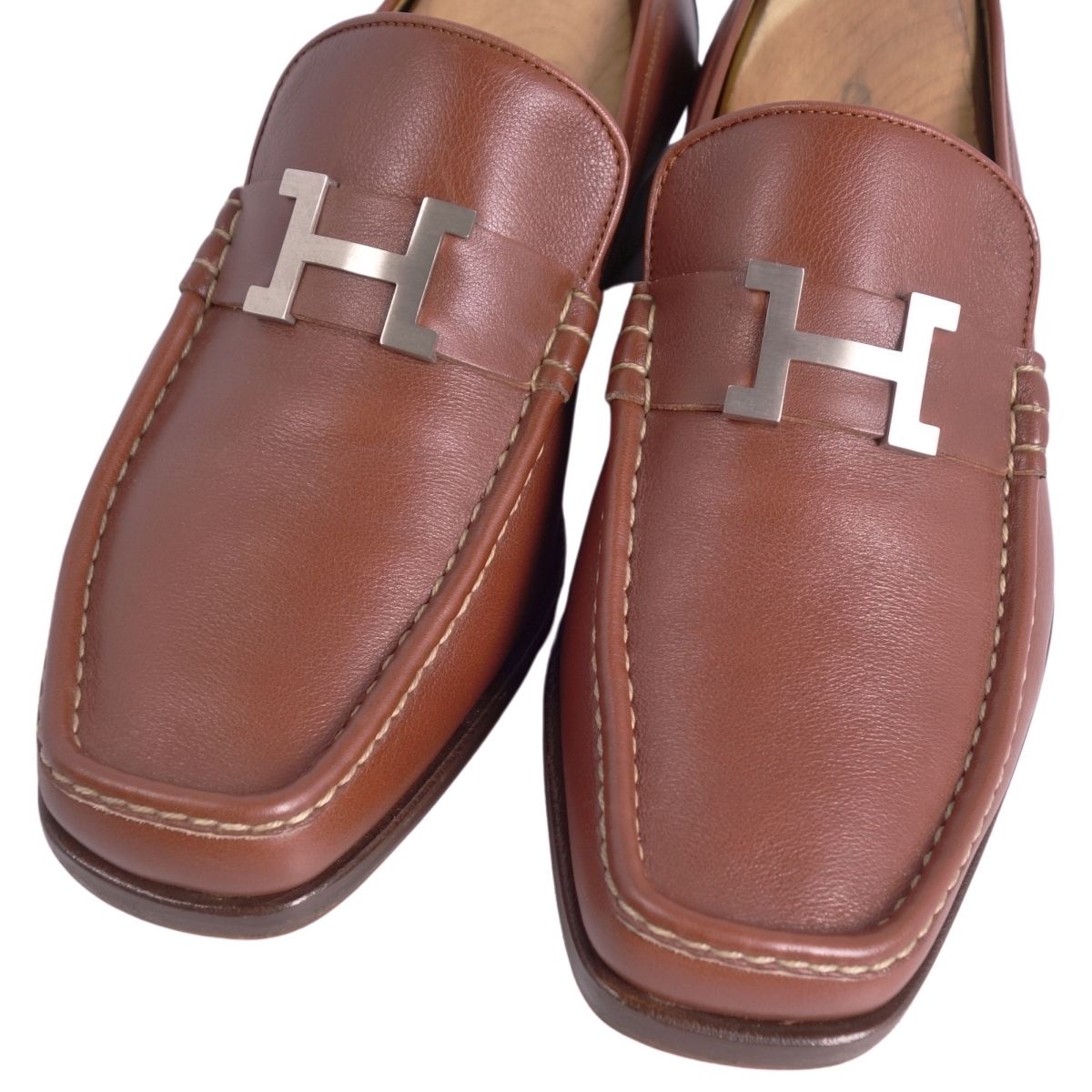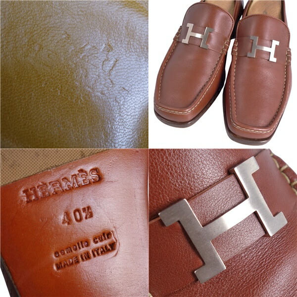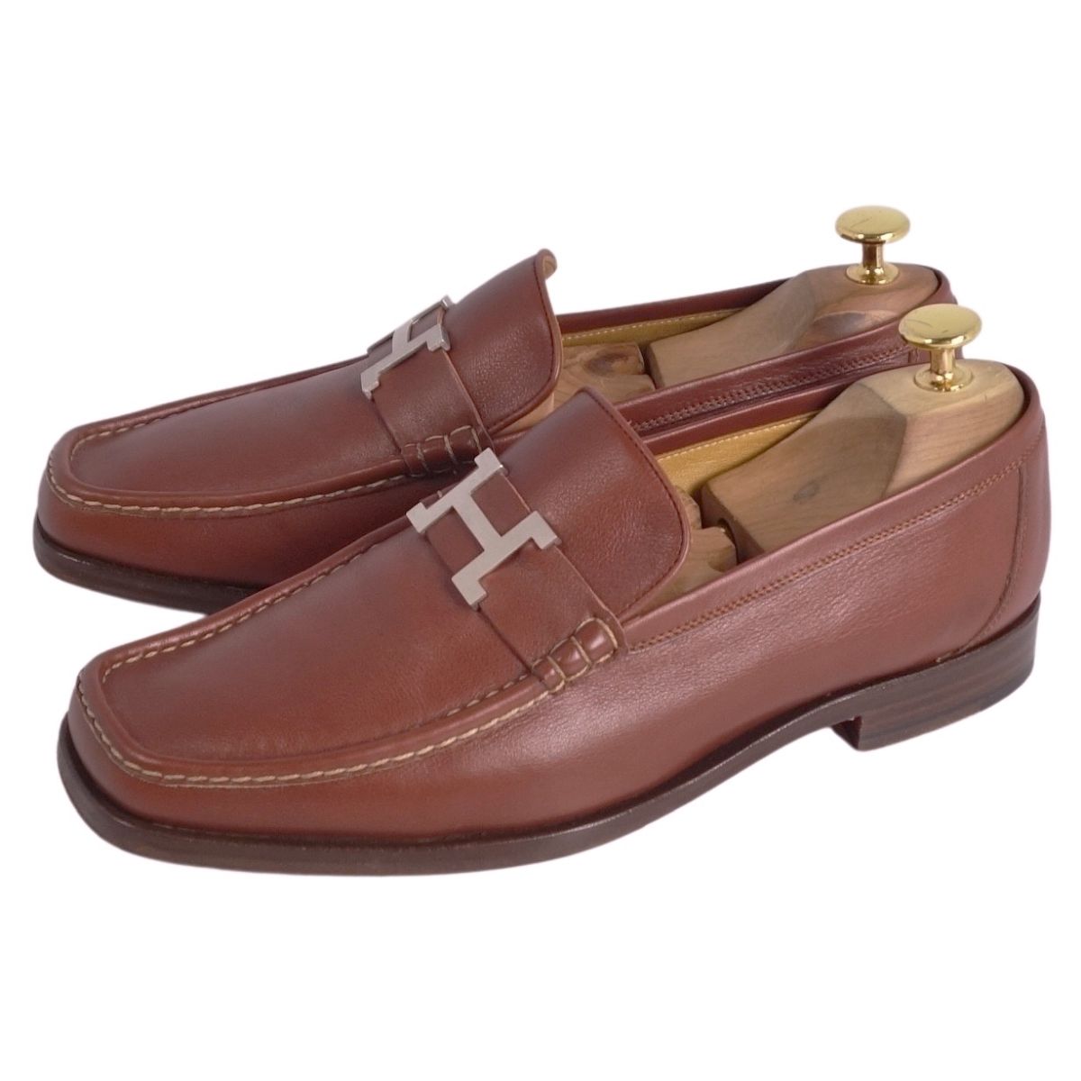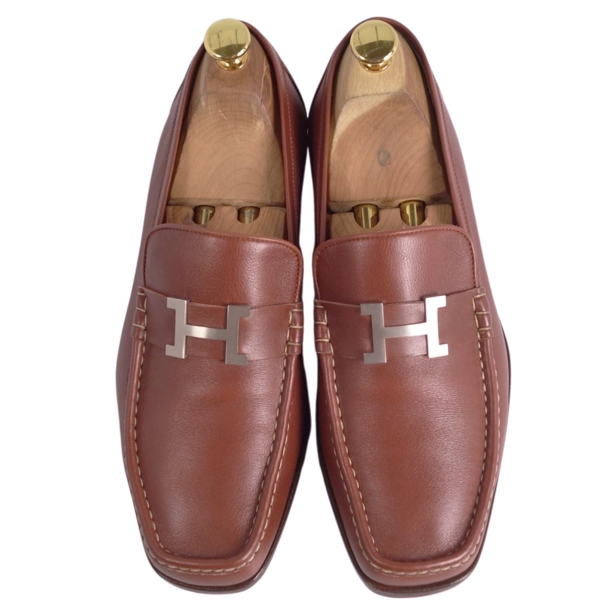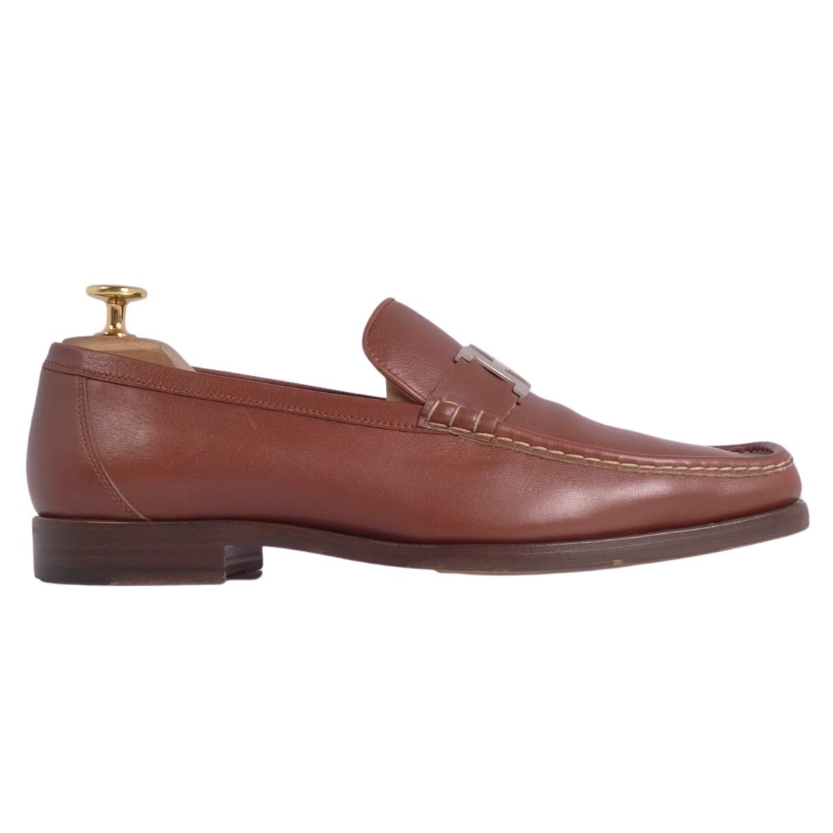 エルメス HERMES ローファー モカシン Hロゴ コンスタンス レザー シューズ 靴 メンズ イタリア製 ブラウン サイズ40.5(26cm相当)