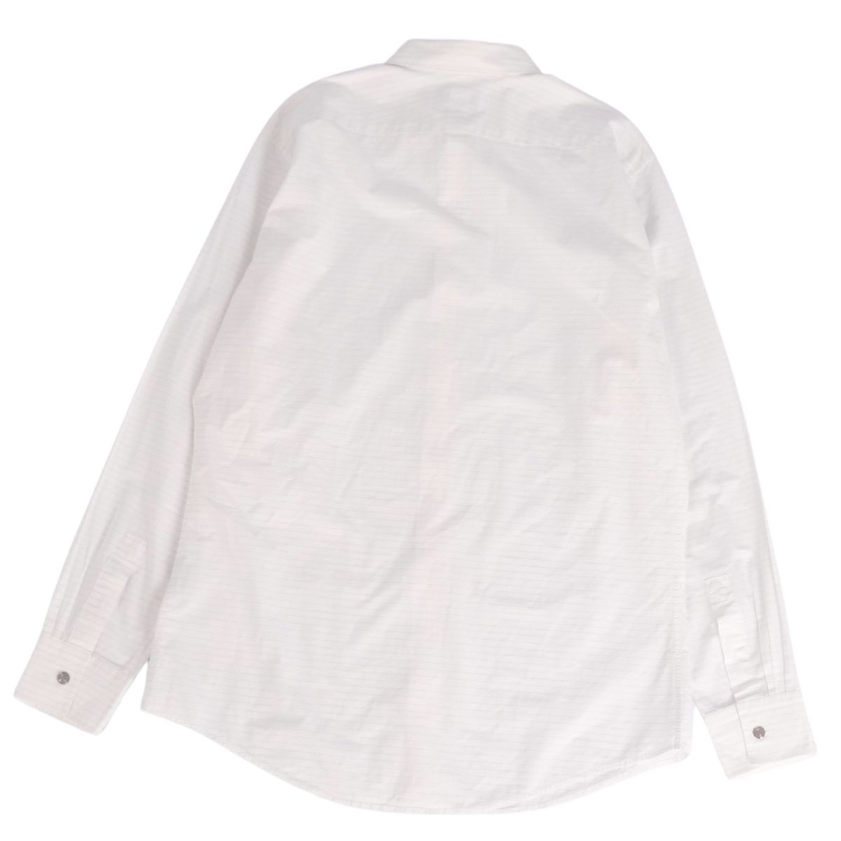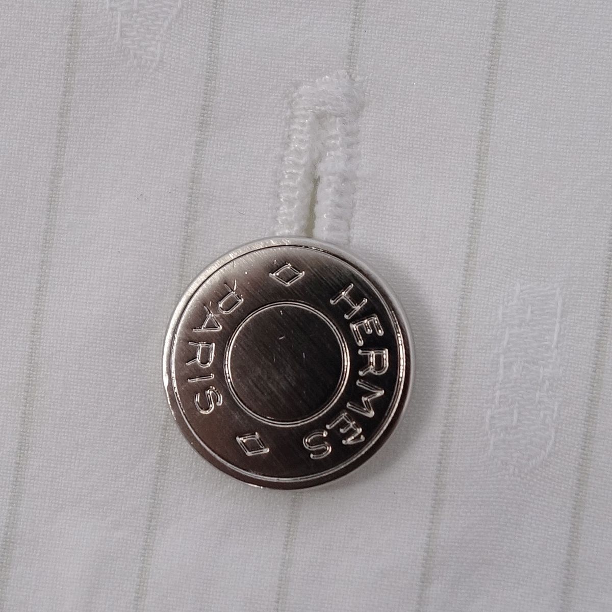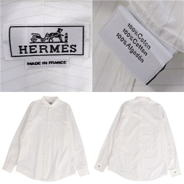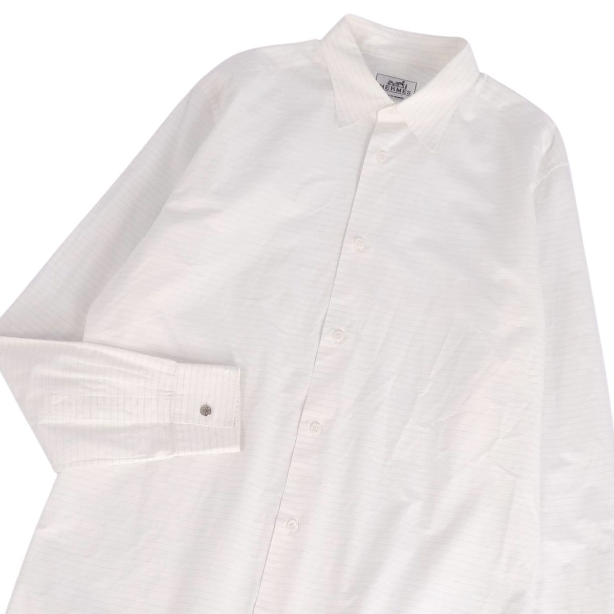 エルメス HERMES シャツ ロングスリーブ 長袖 セリエボタン 総柄 クルマ柄 刺繍 ボーダー コットン トップス メンズ ホワイト サイズ41/16(L相当)