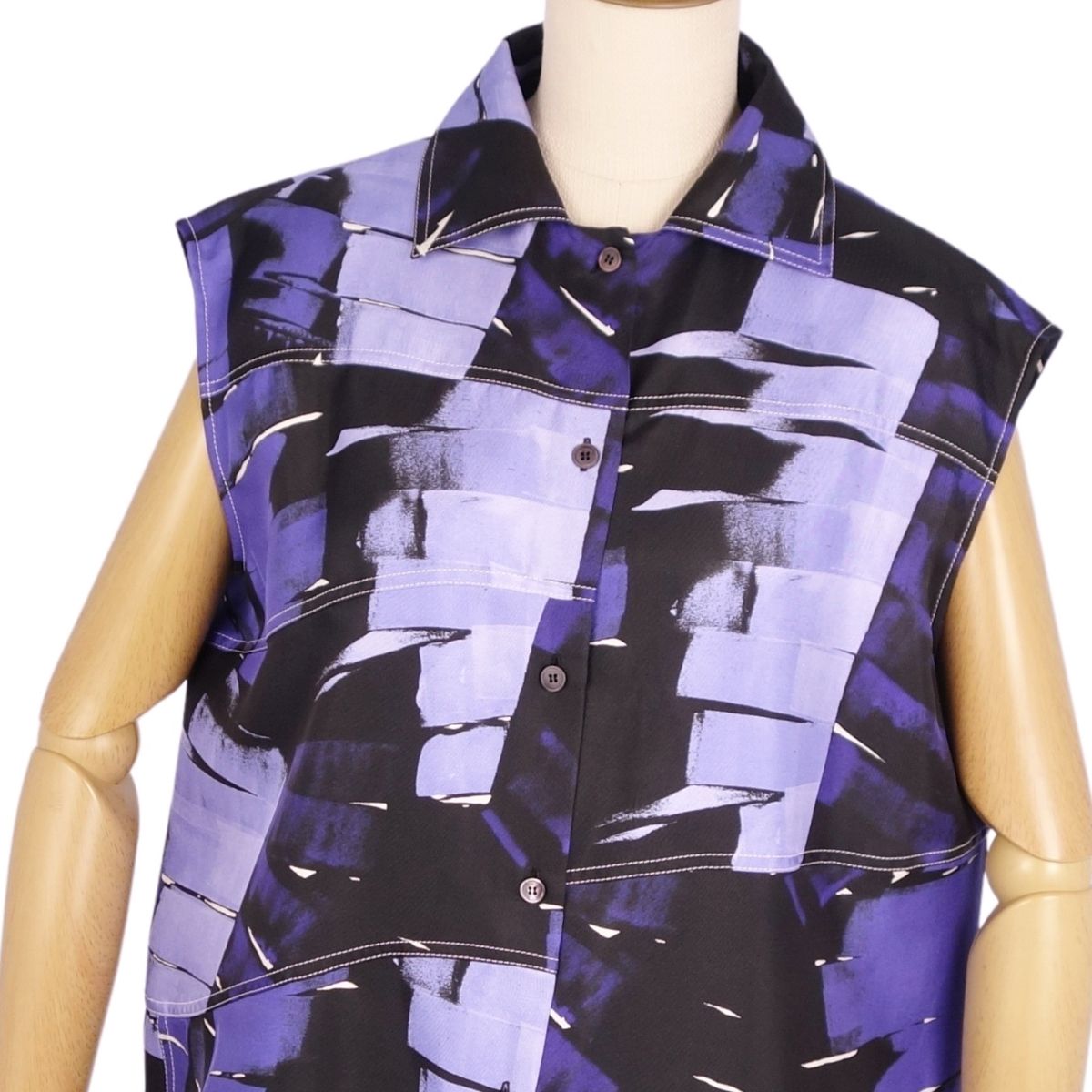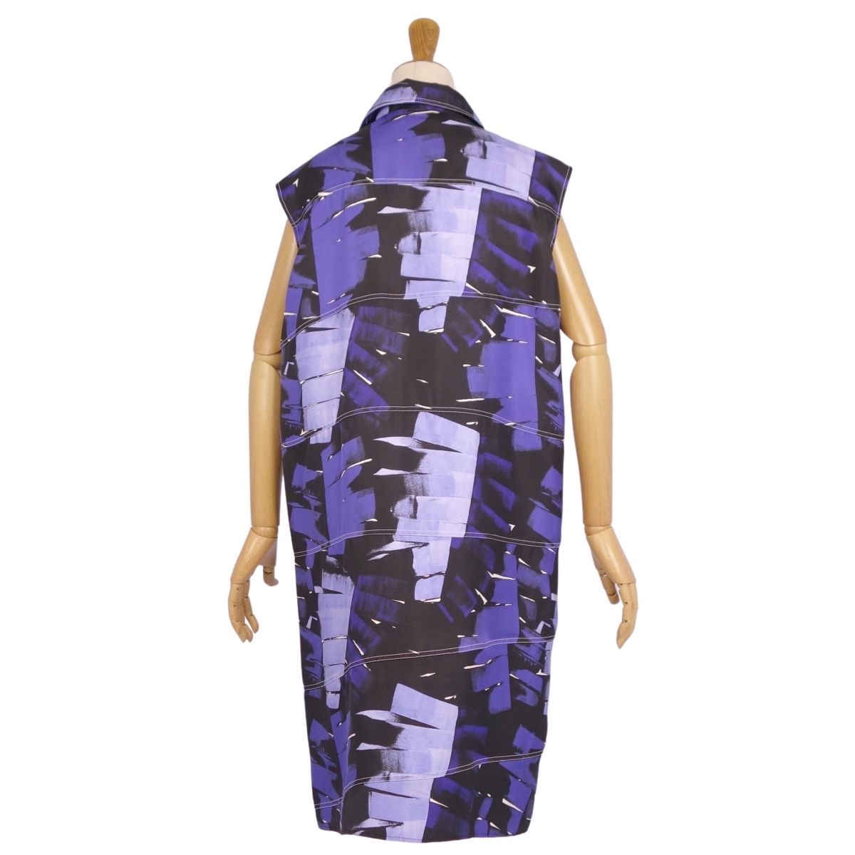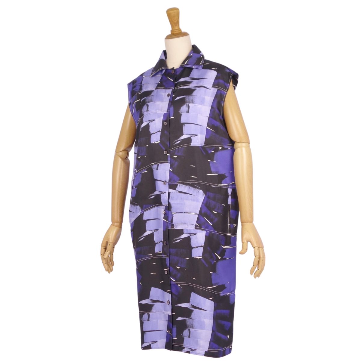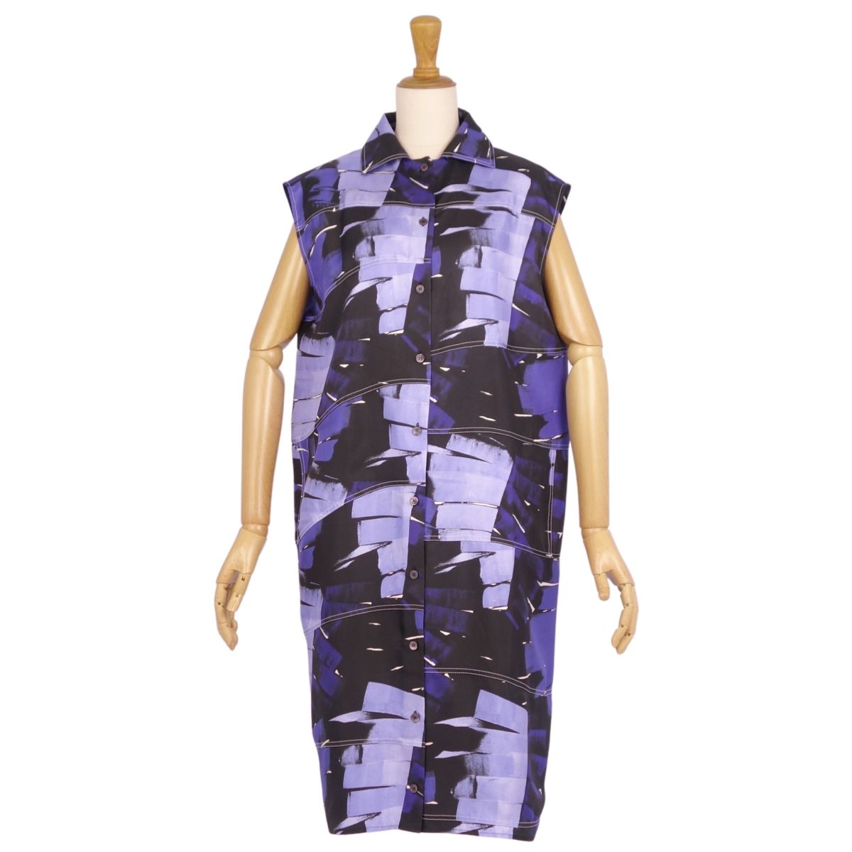 サルヴァトーレ フェラガモ Salvatore Ferragamo ワンピース シャツワンピース ノースリーブ 総柄 シルク トップス レディース イタリア製 ネイビー/ブラック サイズ38(M相当)