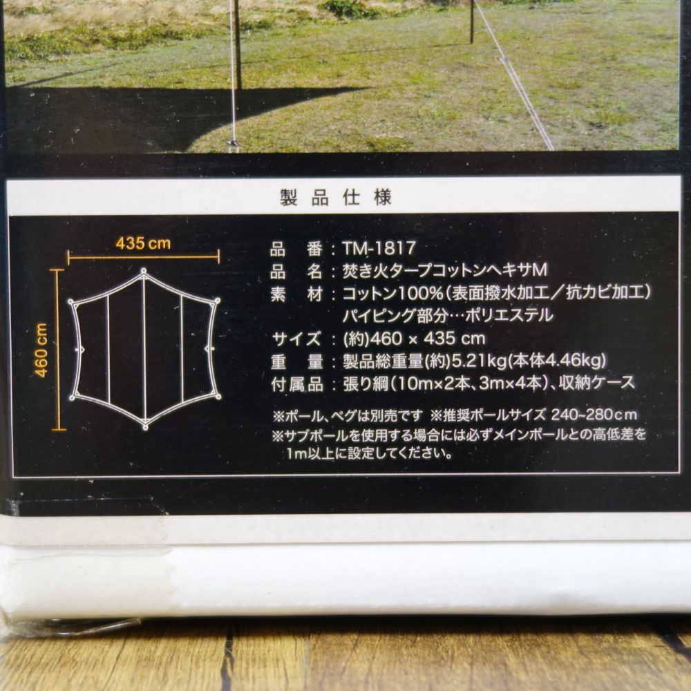 | 商品名 | 【新古品】テンマクデザイン tent-Mark DESIGNS 焚き火 タープ コットン ヘキサ M TM-1817 キャンプ 日除け シェード アウトドア【中古】 |