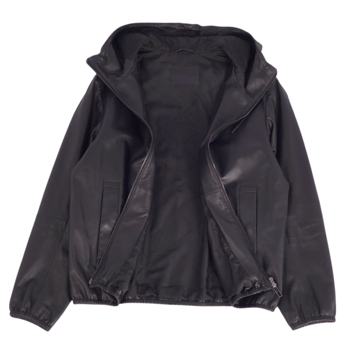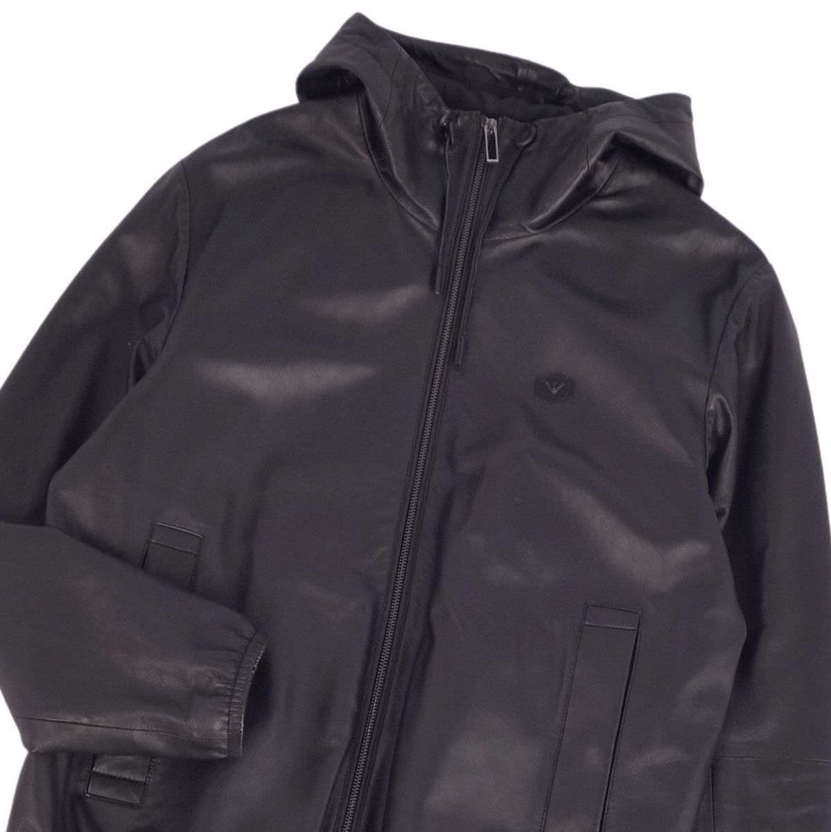 エンポリオアルマーニ EMPORIO ARMANI ジャケット レザージャケット フード付き ラムレザー アウター メンズ ブラック サイズ52(L相当)