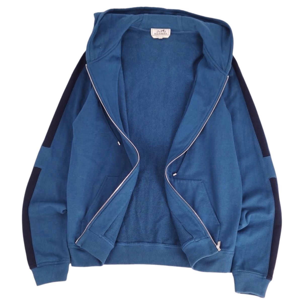 商品名 【美品】エルメス HERMES パーカー ランH RUN H フーディー スウェット ジップアップ コットン トップス メンズ イタリア製 L ブルー【中古】