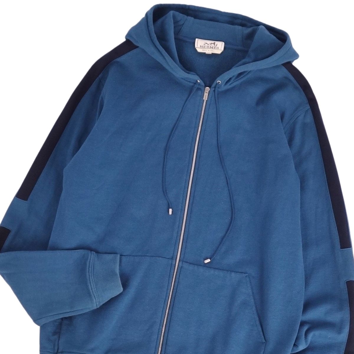 【美品】エルメス HERMES パーカー ランH RUN H フーディー スウェット ジップアップ コットン トップス メンズ イタリア製 L ブルー【中古】
