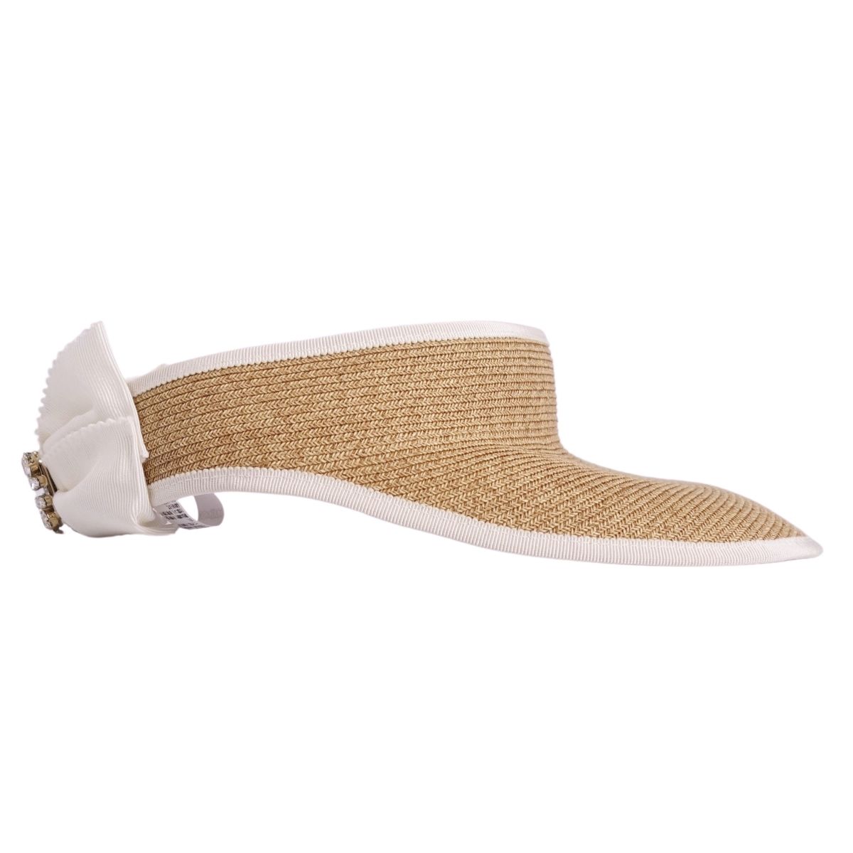 商品名 【新品同様】ロジェヴィヴィエ Roger Vivier 帽子 サンバイザー リボン クリスタル レディース イタリア製 M ベージュ【中古】