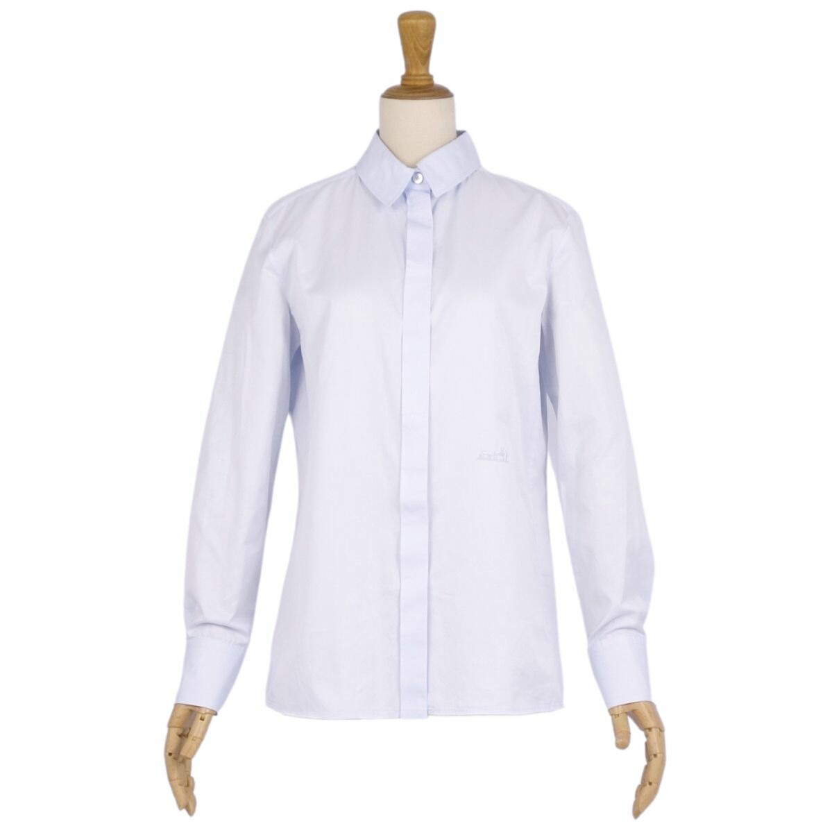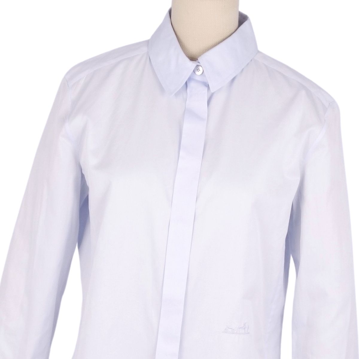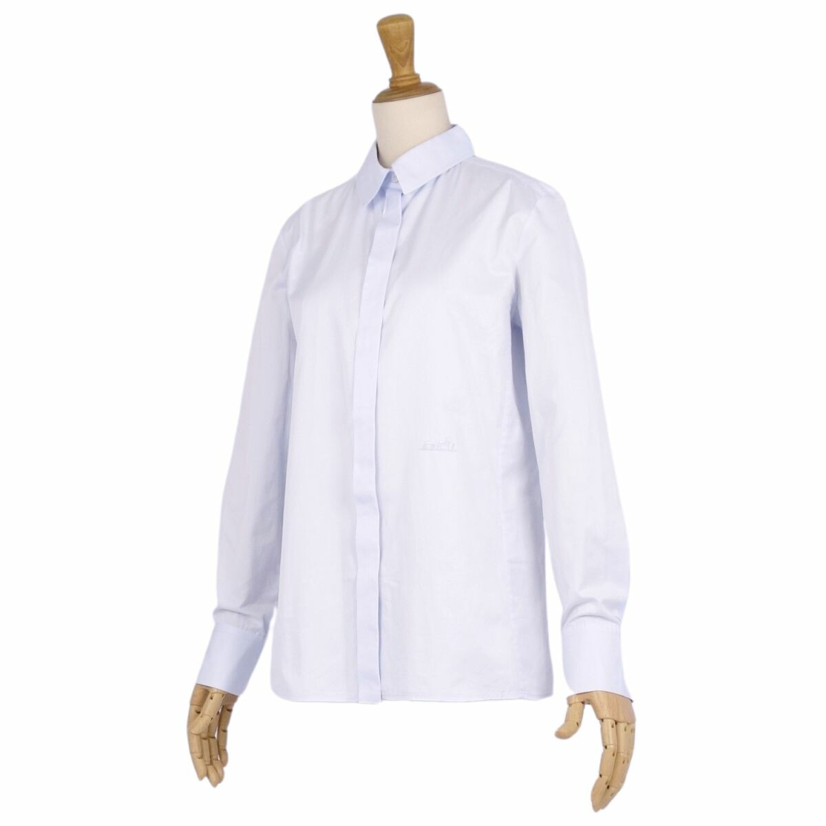 エルメス HERMES シャツ ブラウス ロングスリーブ 長袖 コットン トップス レディース フランス製 ブルー サイズ34(S相当)
