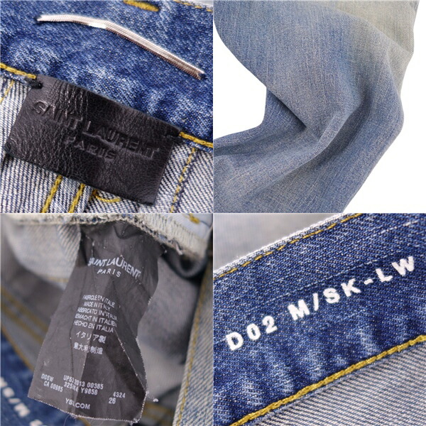 サンローラン パリ SAINT LAURENT PARIS パンツ デニムパンツ ダメージ加工 コットン ボトムス メンズ イタリア製 インディゴブルー サイズ27