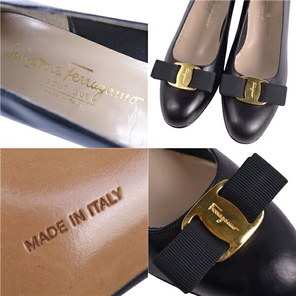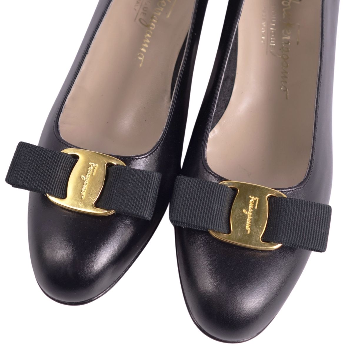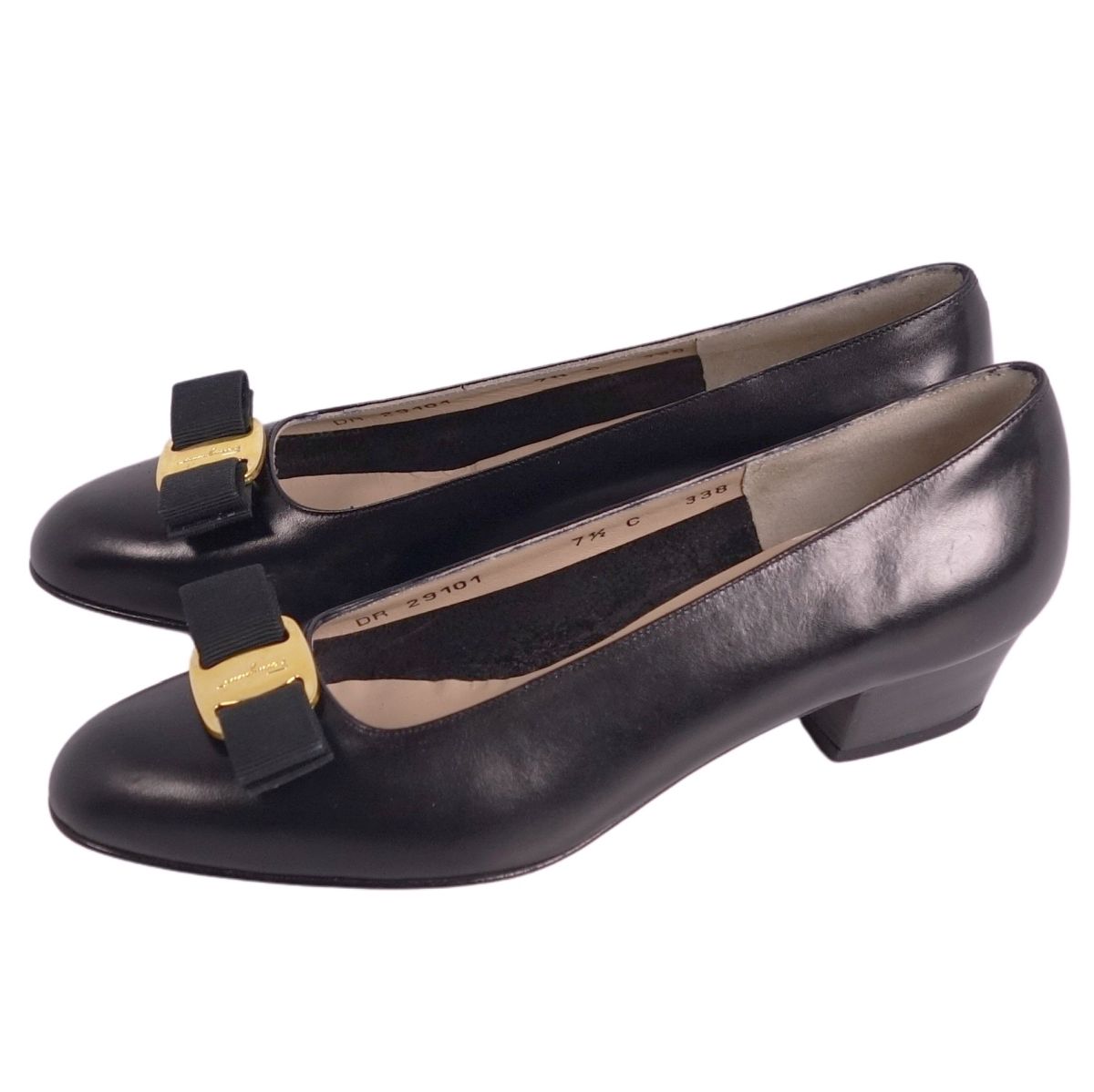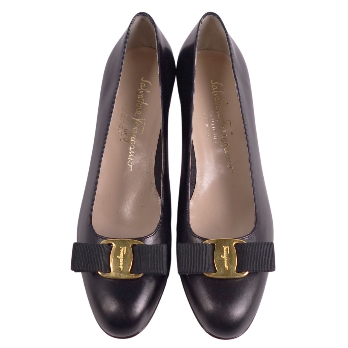 サルヴァトーレ フェラガモ Salvatore Ferragamo パンプス ヴァラ レザー ヒール シューズ 靴 レディース イタリア製 ブラック サイズ7.5C(25cm相当)