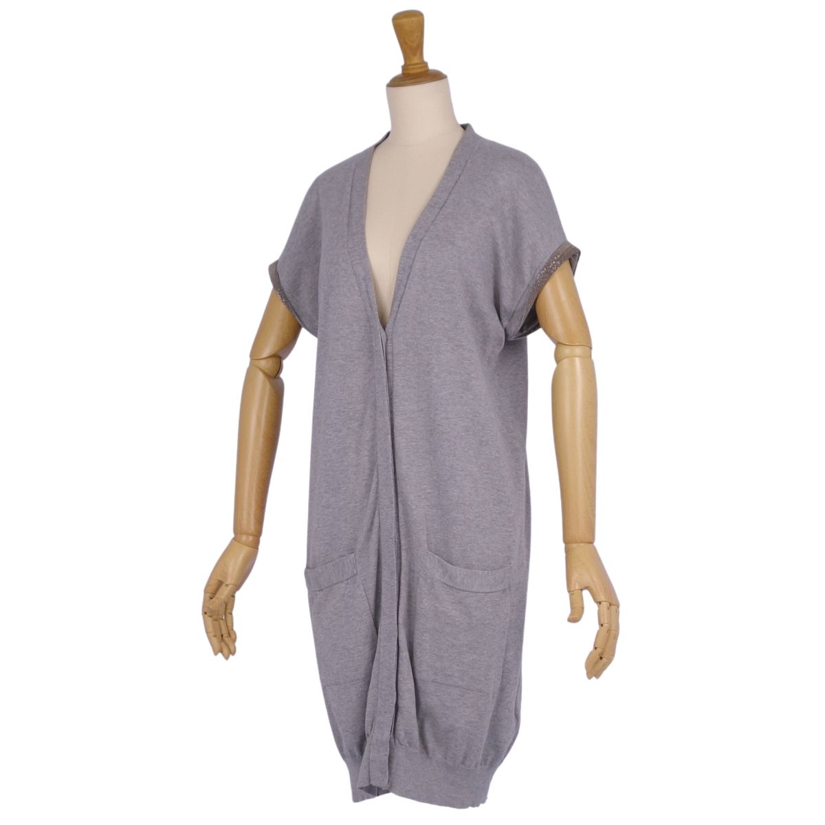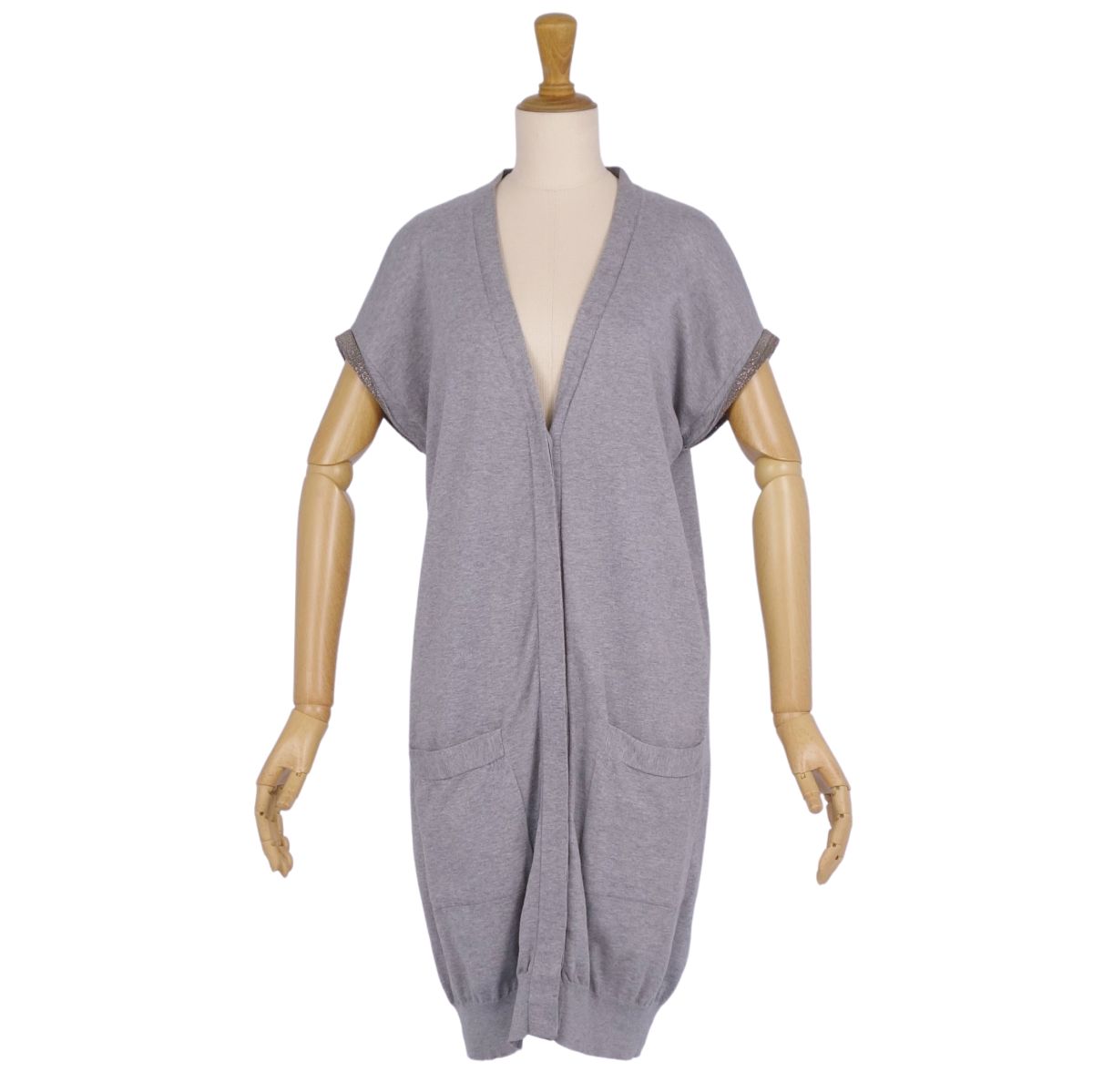 ブルネロクチネリ BRUNELLO CUCINELLI カーディガン コーディガン ニット ノースリーブ コットン トップス レディース イタリア製 L グレー【中古】
