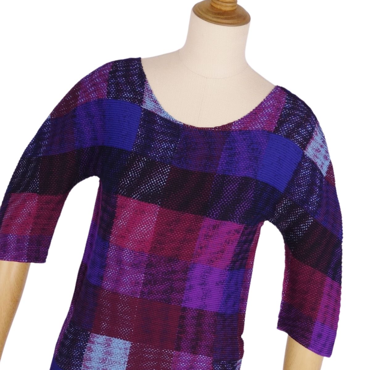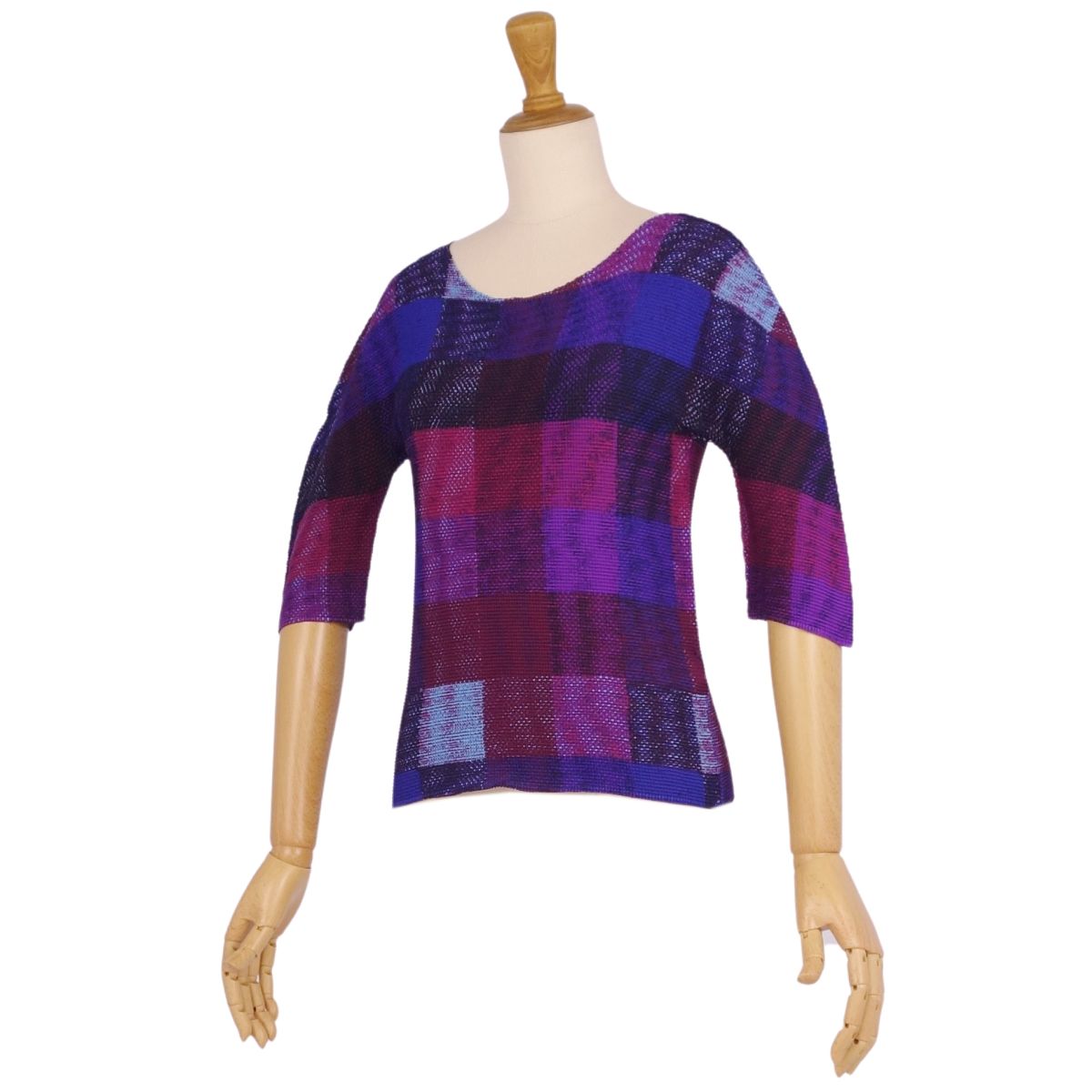 | 商品名 | 【美品】ミー イッセイミヤケ me ISSEY MIYAKE シャツ ブラウス 五分袖 プリーツ チェック トップス レディース M相当 ネイビー/パープル【中古】 |