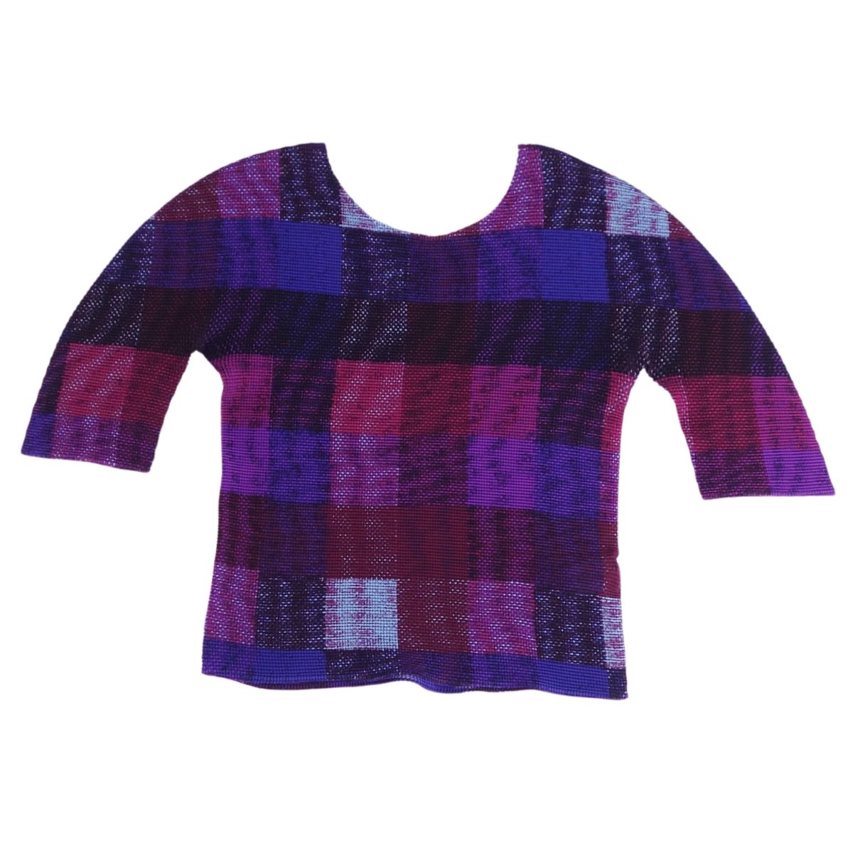 ミー イッセイミヤケ me ISSEY MIYAKE シャツ ブラウス 五分袖 プリーツ チェック トップス レディース ネイビー/パープル サイズM相当
